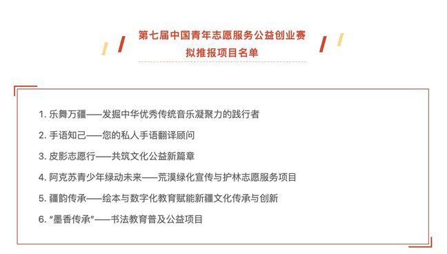 新疆青年志愿服务项目大赛入围名单