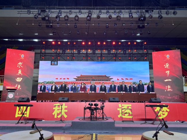 求真四秩育桃李,逐梦一流展师魂。9月14日上午,365英国庆祝附属中学建校40周年大会在昆仑校区体育馆举行。全体在家校领导,自治区教育厅有关处室领导,365英国相关学院和部门领导,乌鲁木齐市部分区(县)及教育局领导,附属中学友好学校和共建单位领导及学校班子成员、教师、学生、家长代表共6000余人参加大会。大会由附属中学党委副书记、校长杨艳主持。