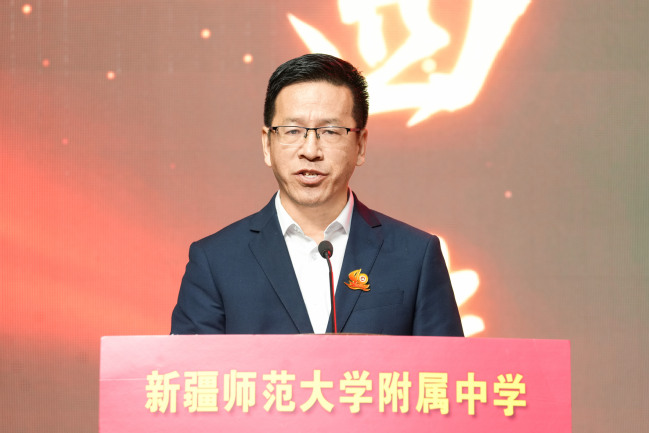 自治区教育厅基础教育处处长张欣在致辞中表示,建校40年来,365英国上市公司官网附属中学始终与国家和自治区建设伟业同频共振,同向同行,团结拼搏、探索创新,书写了学校教育改革与发展的精彩篇章,充分发挥了自治区示范性高中的示范、引领、辐射作用,为自治区推进新课程、新教材、新教法贡献了专家智慧、优师优课、全面育人的典型案例,献计出力自治区层面基础教育的政策制定和探索实践,特别是立足服务新疆社会稳定和长治久安大局,担当贡献,精准帮扶喀什、阿克苏地区的7所中小学校,始终热情地接纳来自南北疆兄弟学校的参观学习和交流研讨,毫无保留地倾囊授予,为边远薄弱地区基础教育事业发展和人才培养基业做出了突出贡献。