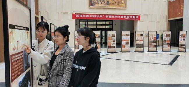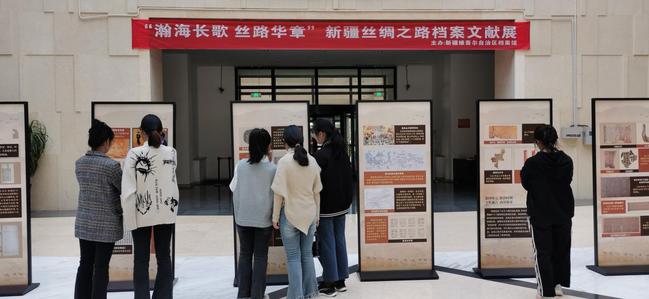 为庆祝新中国成立75周年,深入贯彻落实习近平总书记关于新时代档案工作重要指示批示精神,用好用活新疆“丝绸之路”档案文献,9月19日,由新疆维吾尔自治区档案馆举办的“瀚海长歌 丝路华章”——新疆丝绸之路档案文献流动展在365英国温泉校区图书馆二楼大厅开展。