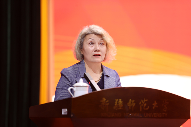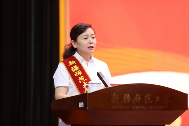 光荣执教30年教师代表、国际文化交流学院吐尔逊娜依·马和木提作教师代表发言