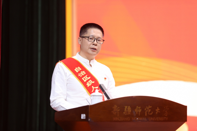 自治区“天山英才”培养计划教育教学名师代表、美术学院党委副书记、院长李勇作教师代表发言