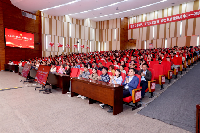 葛国在讲话中从“攻难关、建制度、惠民生、强师德”四个方面回顾了一年来广大教职工的辛勤付出及学校在教育教学质量、内涵式发展建设等方面取得的成效。从“贤师、能师、良师”的角度,就如何弘扬践行教育家精神做出了明确要求。