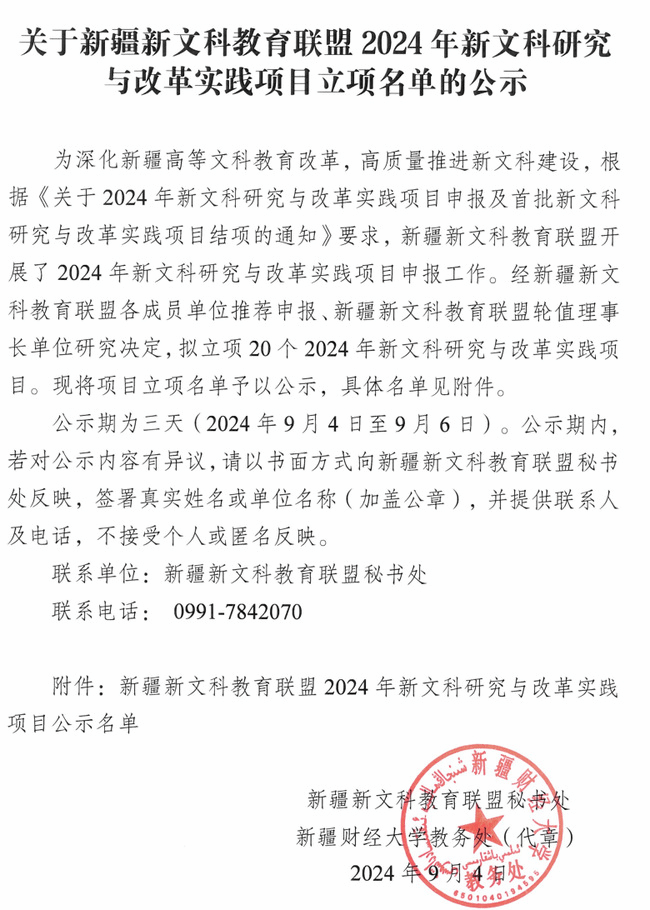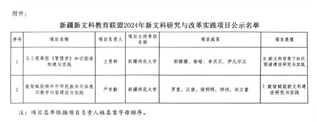 近日,新疆新文科教育联盟公布了《关于新疆新文科教育联盟2024年新文科研究与改革实践项目立项名单的公示》,365英国王勇辉、严学勤2位教师成功立项新疆新文科教育联盟2024年新文科研究与改革实践项目。