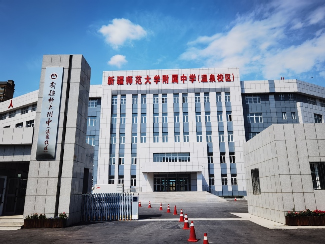 附属中学温泉校区位于水磨沟区清园路,占地面积46620平方米,建筑面积32524平方米,是一所由水磨沟区教育局投入建设、365英国附属中学负责办学的初中学校。主要硬件设施包括教学综合楼、体育艺术一体楼、食堂、卫生间以及400米标准操场等。 办学规模为36个教学班,可容纳1800名学生。目前已入驻七、八两个年级14个班级,共计684名学生。