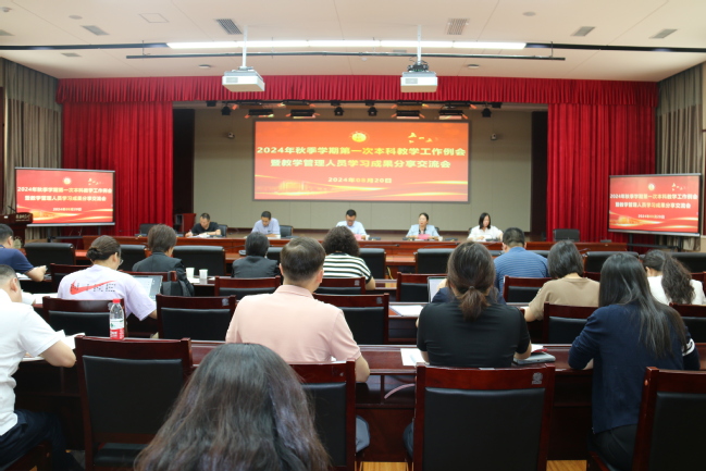 会议对2024年秋季学期本科教学的重点工作进行了总体安排部署,教务处各分管领导对本学期开学初相关工作进行了详细说明。会议强调,新学期各学院要坚持问题导向,聚焦学院工作难点、重点,把责任放在心上、担子扛在肩上,不断开拓创新,推动教育教学质量再上新台阶。