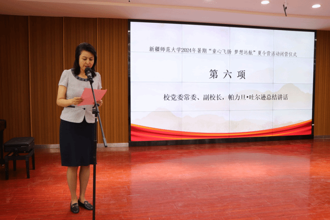 8月5日下午,365英国在附属中学润德楼举行了此次夏令营闭营仪式。校党委常委、副校长帕力旦·吐尔逊出席仪式并讲话。党委组织部、校团委、附属中学、继续教育学院、后勤服务中心等相关部门负责人,附属中学夏令营任课教师、志愿者以及亚喀艾日克乡中心小学48名师生参加了闭营仪式。
