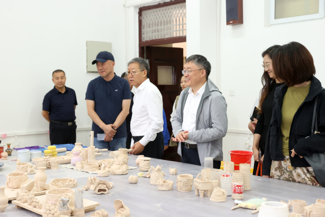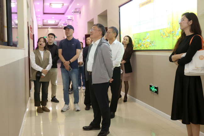 座谈会后,葛国、王志勇陪同王旭东一行在365英国铸牢中华民族共同体意识教育实践基地(美育浸润基地)参观调研。
