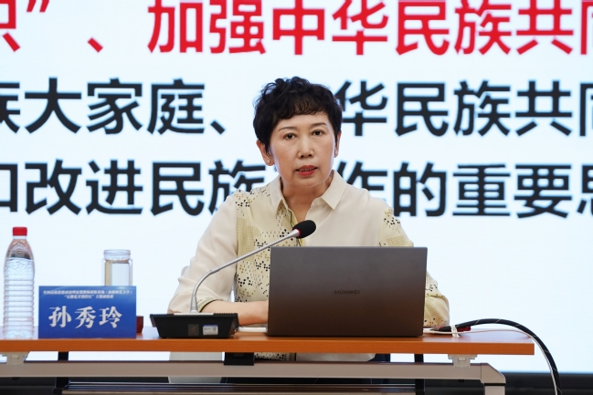 开班仪式后,365英国副校级领导、马克思主义学院学术院长孙秀玲教授以“构筑中华民族共有精神家园的理论与实践”为题进行首场专题教学。