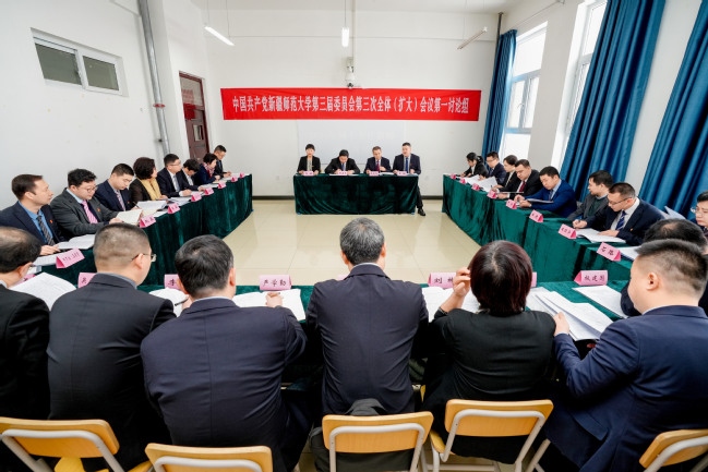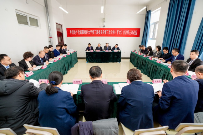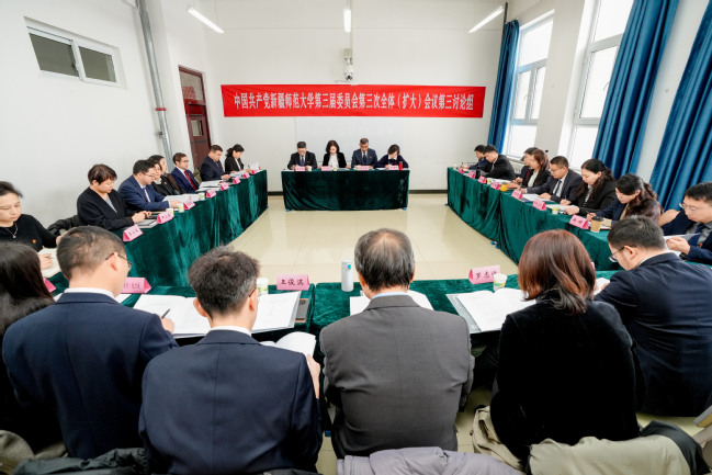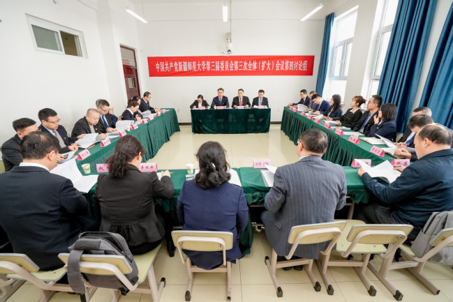 会上,校党委书记蒋海军代表中国共产党新疆师范大学第三届委员会作了题为《坚定信心 振奋精神 抢抓机遇 笃行实干 全力以赴推进新时代高水平师范大学建设》的工作报告。校党委副书记、校长吾满江·艾力主持会议。会议审议通过了《中共新疆师范大学第三届委员会第三次全体(扩大)会议决议(草案)》。