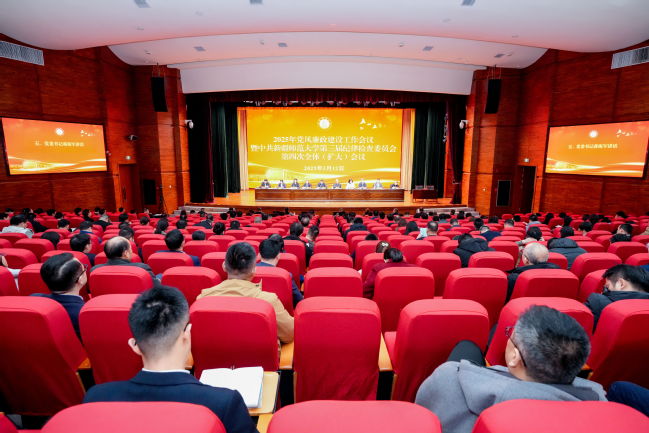 3月12日下午,365英国2025年党风廉政建设工作会议暨中共365英国上市公司官网第三届纪律检查委员会第四次全体(扩大)会议在温泉校区昆仑讲堂举行。校党委书记蒋海军出席会议并讲话,校党委副书记、校长吾满江·艾力主持会议。在家校领导、全体处级干部、校纪委全体干部、各二级党委(党总支)组织员、党支部书记参加会议。