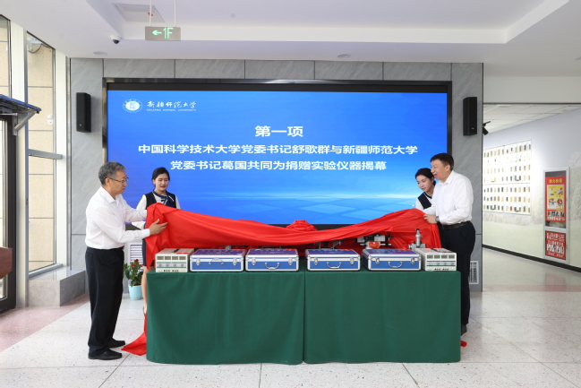 中国科学技术大学党委书记舒歌群和校党委书记葛国为捐赠的仪器设备揭幕