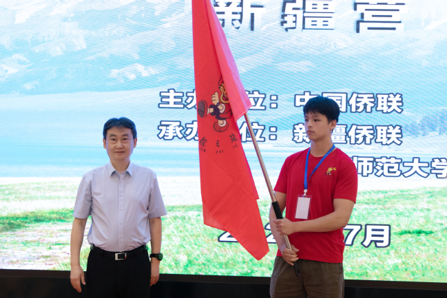自治区侨联党组书记、主席任澄向营员授旗