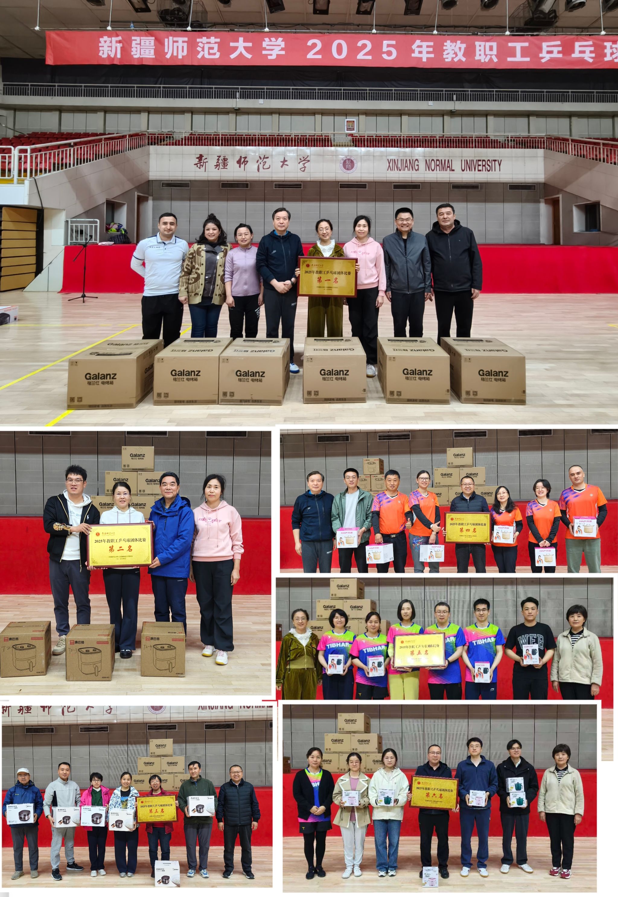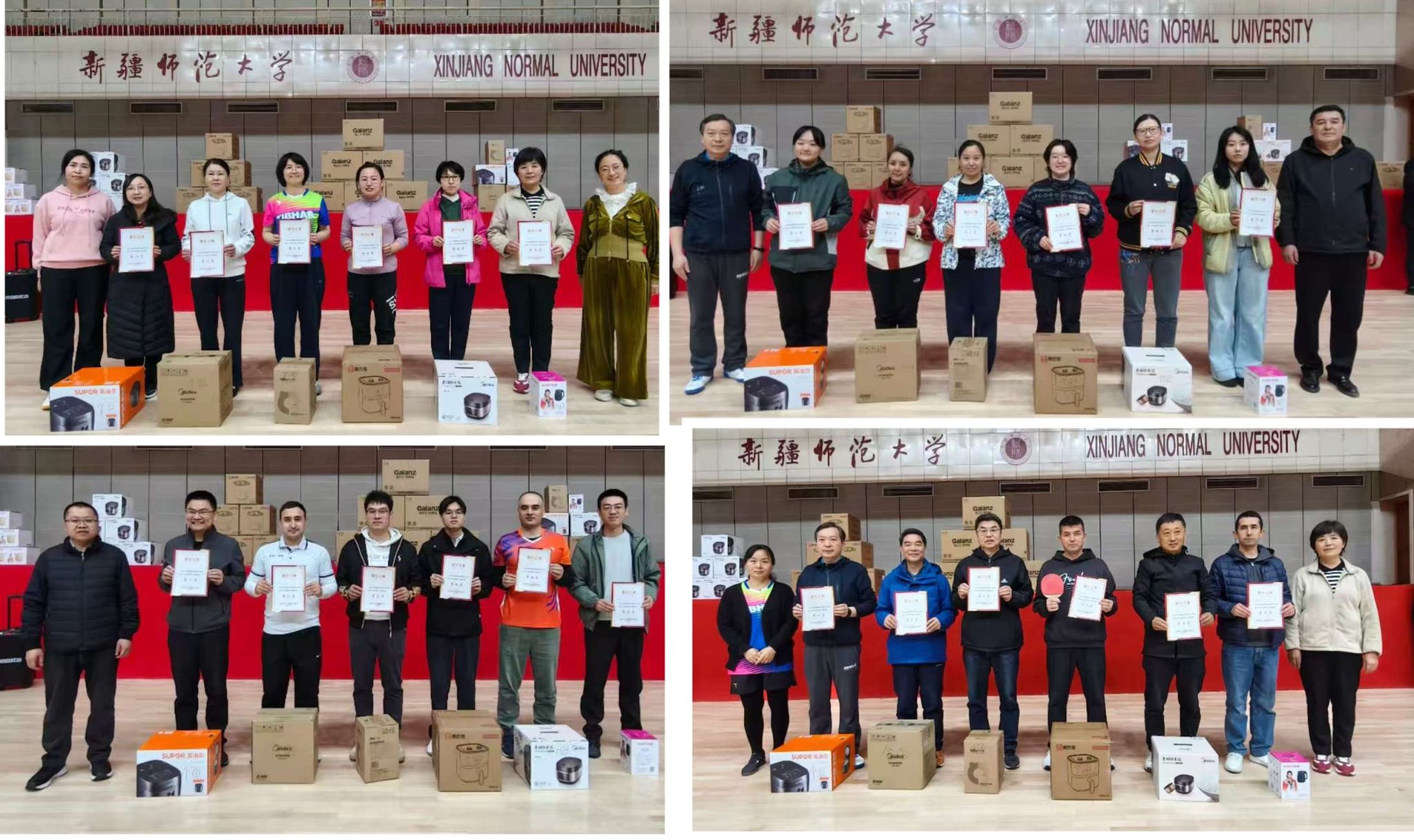 本次比赛分为男子单打青年组和中老年组、女子单打青年组和中老年组、团体混合赛。经过两天激烈的比拼,机关代表队、心理学院、生命科学学院、教育科学学院、化学化工学院、计算机科学技术学院获得团体混合赛前六的好成绩,程姣姣、努尔阿米乃·麦麦提、贡莎莎、马丽娜、白珊、 侯立杰获得女子青年组前六名,孟小燕、王雨晴、王云、景雅玲、古丽皮艳·托乎提、刘彬等获得女子中老年组前六名,彭超、阿得利江·塔衣尔、张政、李克、努尔艾合买提·吾布力、常序荣获男子青年组前六名,巴特、周治金、李英军、阿布都萨拉木·吐尔地、刘学勇、买买提·阿布力孜荣获男子中老年组前六名。