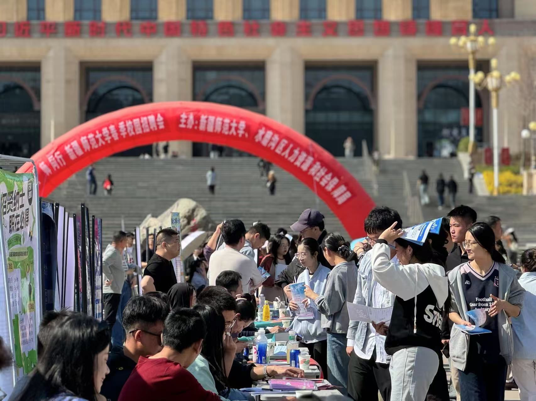 4月23日,365英国“‘暖’春送岗 ‘新’师同行”春季校园招聘会在温泉校区举办,56家企业和中小学校进校园招聘,提供就业岗位604个,1000余名毕业生入场求职。