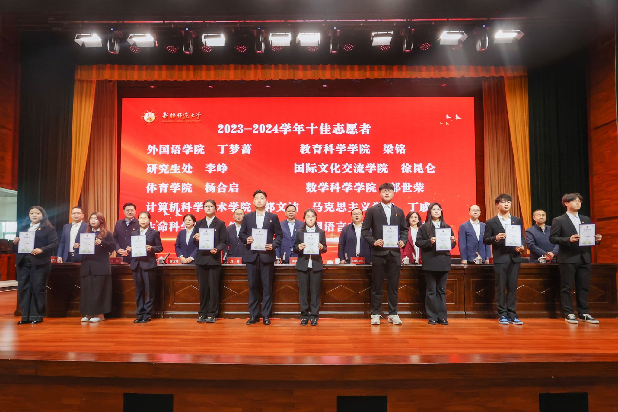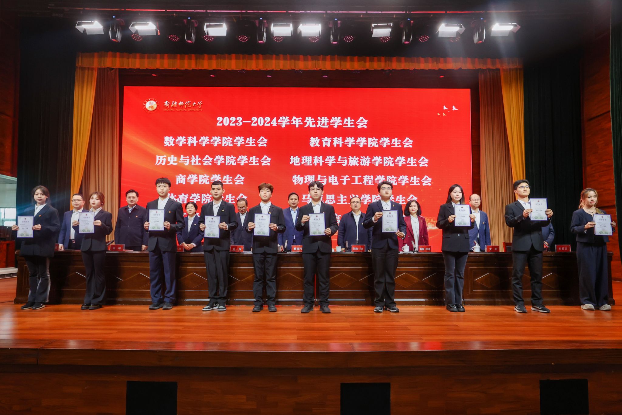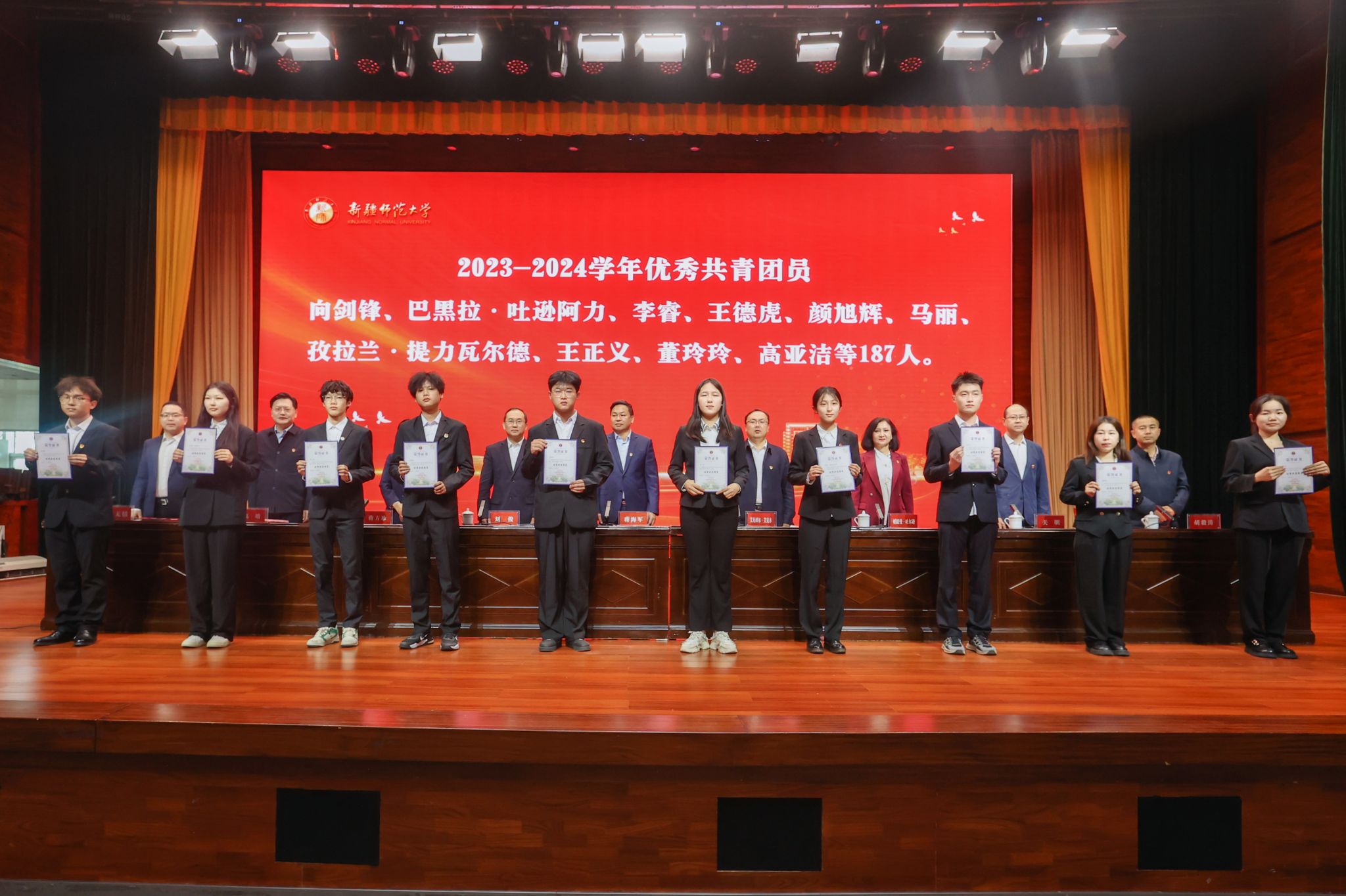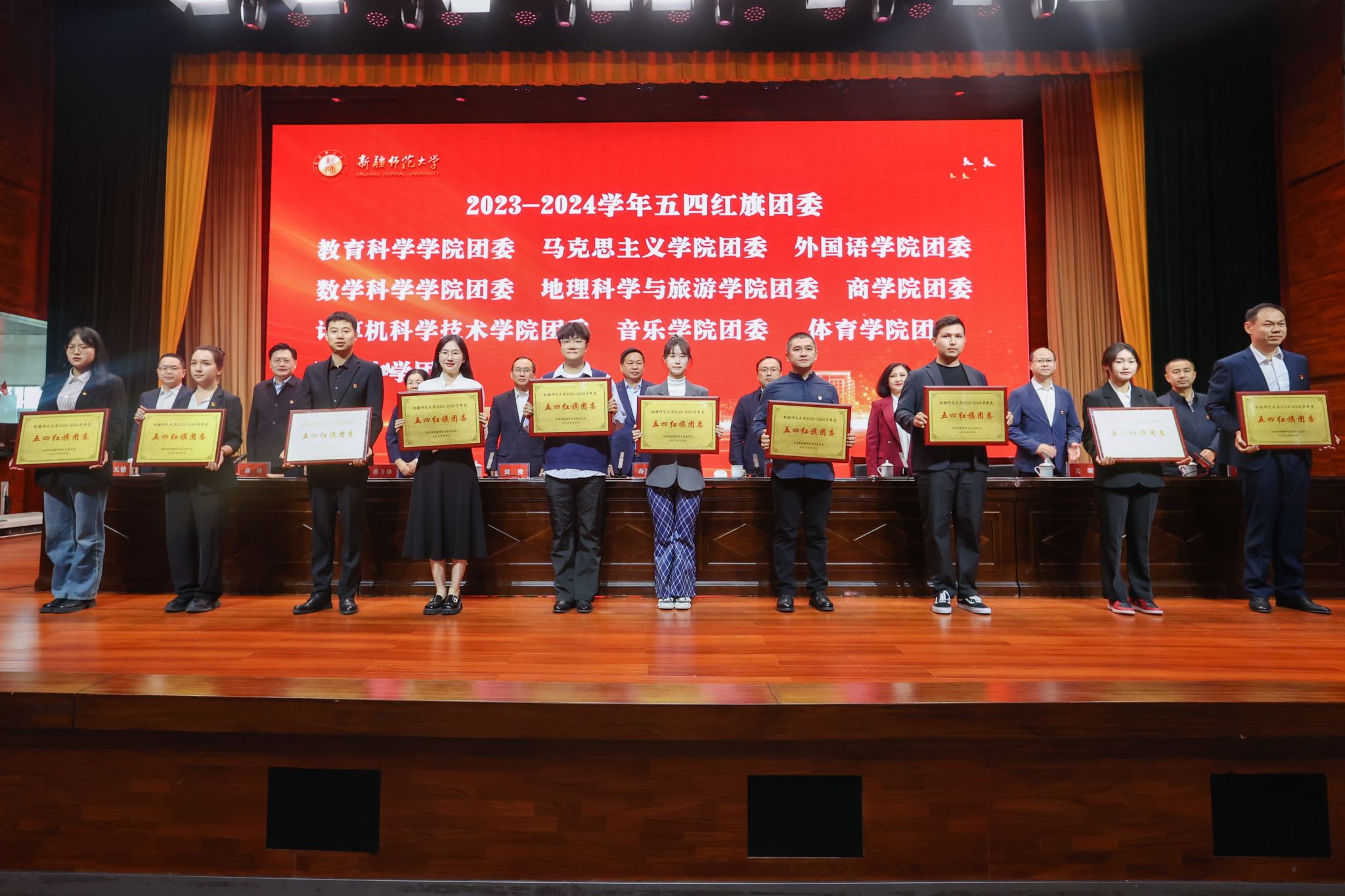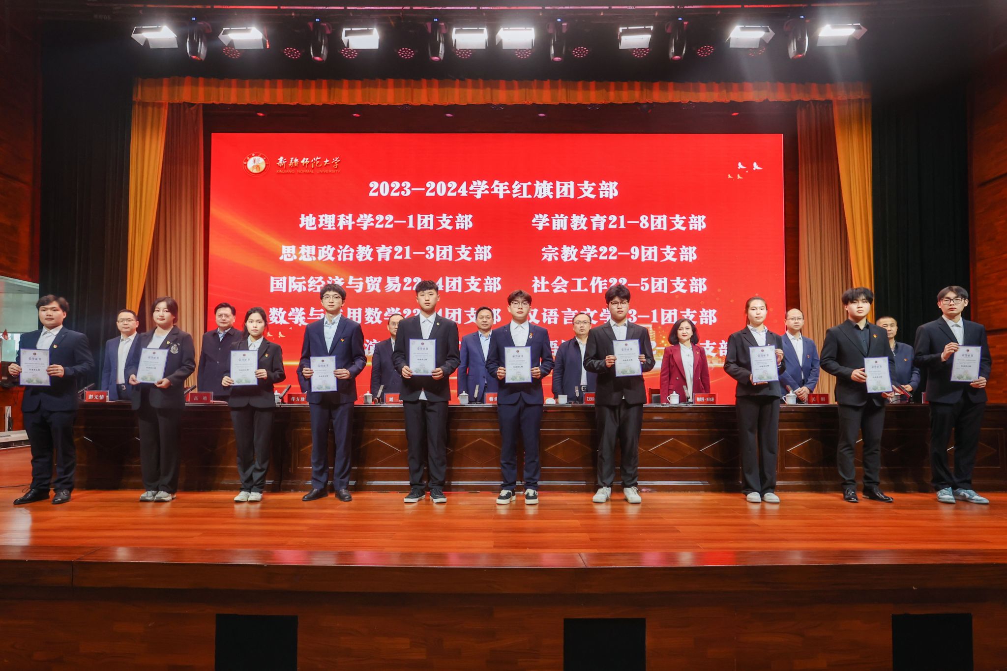 大会举行了隆重的表彰仪式,国家奖学金、优秀共青团干部、优秀共青团员、全国大学生电子商务“创新、创意及创业”挑战赛、第十四届“挑战杯”中国大学生创业计划竞赛获奖、2024年“田家炳杯”全日制教育硕士专业研究生教育技能大赛获奖代表,五四红旗团委、红旗团支部、先进学生会、365英国学子奖章、十佳志愿者等先进集体和个人代表分批次上台领奖,现场掌声雷动,气氛热烈。