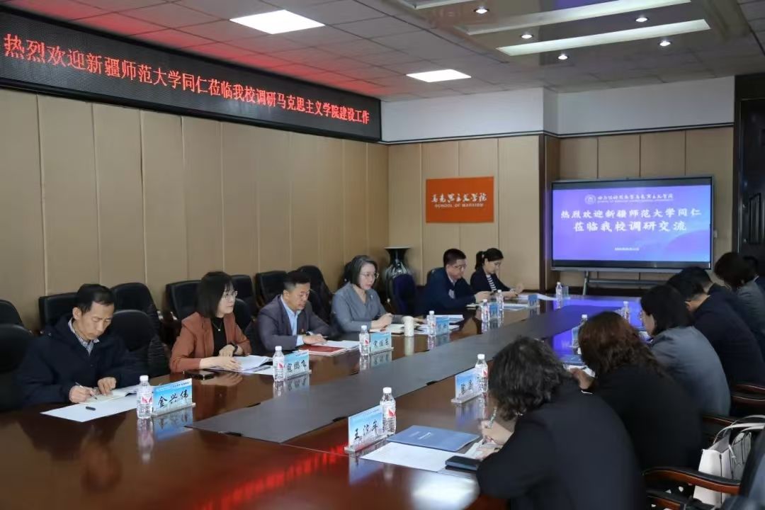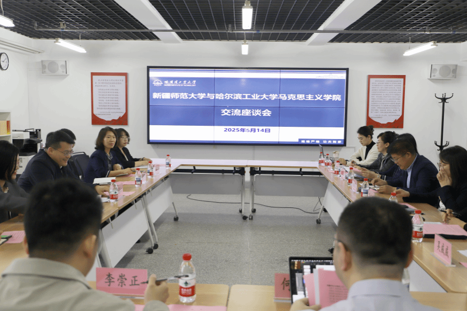 5月15日上午,刘晨江一行来到哈尔滨师范大学交流学习。哈尔滨师范大学党委副书记、工会主席郭砾,教育部高校思想政治工作队伍培训研修中心、科研处、马克思主义学院等相关部门负责人出席座谈交流会。刘晨江介绍了学校的建设发展情况、表明本次调研的目的和意义。双方与会人员就思政课教师队伍建设、思政与人才工作、学位点建设、团队建设、科研攻关、人才培养等工作经验和做法进行了广泛交流。郭砾指出,两校同为师范院校、同处边疆地区,在办学治校方面有广泛的共同之处、共同困境和合作空间,希望发挥两地特色资源,在思政课教师、思政工作队伍等研修实践方面进行合作、为提升黑龙江、新疆两地思政队伍建设水平作贡献。