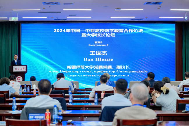 校党委副书记、校长吾满江·艾力出席论坛并主持论坛下半场主题发言环节;校党委常委、副校长王世杰在此次论坛上就“中国-中亚国家上海合作组织框架下数字教育合作:机遇、挑战和共赢”这一主题做主旨发言。