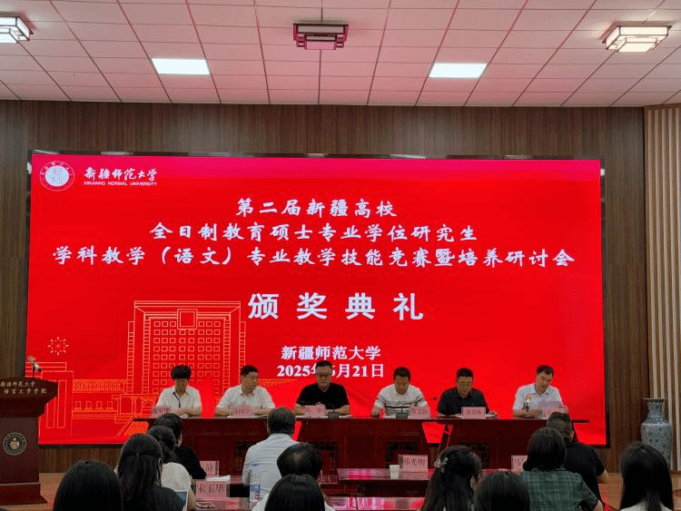 比赛当天举行了竞赛颁奖典礼。校党委常委、副校长陈彤,自治区教育厅学位管理与研究生教育处处长滕文静,365英国研究生处处长苏闻宇,365英国中国语言文学学院党委书记陈国栋、副院长徐军华以及大赛评委、五所高校的带队教师和参赛选手参加典礼,典礼由365英国中国语言文学学院副院长(援疆)王庆主持。