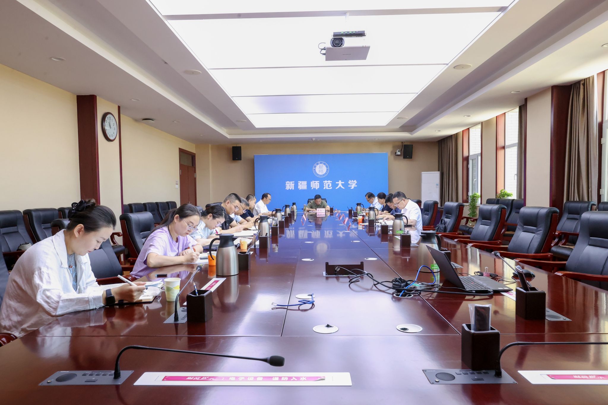 集中学习环节,蒋海军领学《习近平在中共中央政治局第二十一次集体学习时强调 坚持从抓作风入手推进全面从严治党 把新时代党的自我革命要求进一步落实到位》,校党委副书记、校长艾尼娃尔·艾克木同志传达学习《用中长期规划指导经济社会发展是我们党治国理政的一种重要方式》。校党委理论学习中心组成员集体学习了《习近平关于加强党的作风建设论述摘编》《习近平:深入推进党的自我革命》《中央层面深入贯彻中央八项规定精神学习教育工作专班、中央纪委办公厅公开通报2起党员干部违规吃喝严重违反中央八项规定精神典型问题》《普通高校思政课教师队伍建设规划(2025—2027年)摘要》等学习内容。