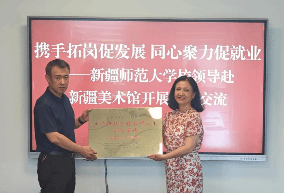 7月4日,校党委常委、副校长帕提曼・吐尔逊带领教务处及美术学院相关负责人赴新疆美术馆开展“携手拓岗促发展 同心聚力促就业”调研。新疆美术馆馆长刘世清介绍了双方长期合作基础,提及美术学院学生常年在此开展专业实习及志愿服务,希望推进科研课题联合申报。帕提曼・吐尔逊提出三项合作构想,即联合开设“订单班”定制人才培养方案;常态化开展校友慰问以优化人才培养;深化科研合作推动典藏研究与文创开发。活动中,帕提曼・吐尔逊为新疆美术馆授予“自治区产学研联合培养研究生示范基地”“实习实训基地”牌匾,标志着双方合作进入规范化阶段。
