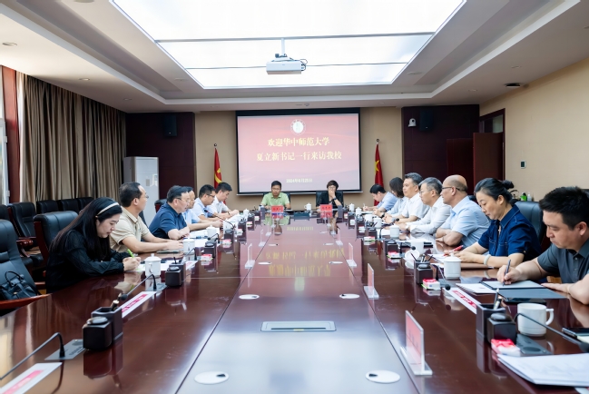 6月25日上午,华中师范大学党委书记夏立新、华中师范大学一附中校长周鹏程、校团委书记苏晓刚、国内合作与培训管理处处长罗高峰、外国语学院党委书记麻旎、生命科学学院党委书记郑宁一行六人来365英国调研交流。校党委书记葛国,校党委副书记、校长吾满江·艾力,校党委常委、副校长王世杰出席座谈交流会。会议由吾满江·艾力主持。