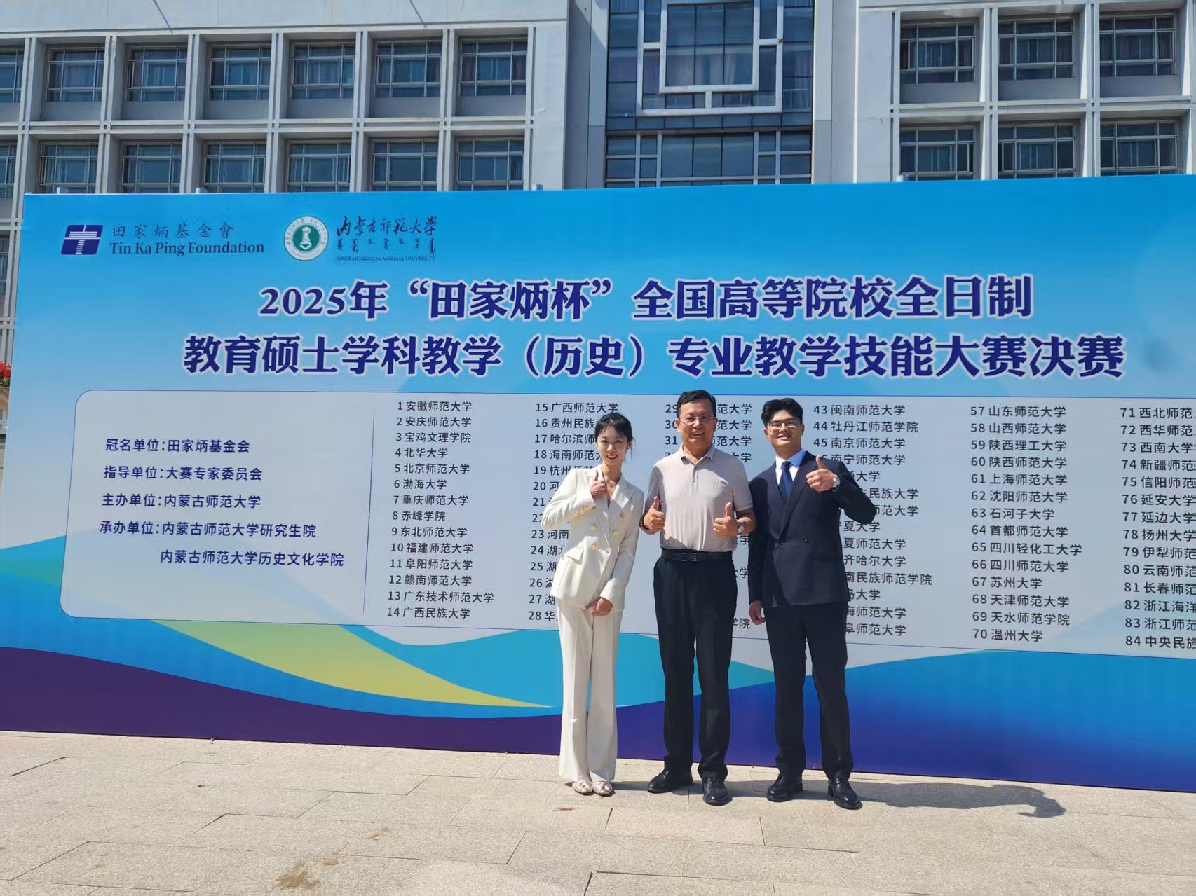 8月22日至25日,2025年全国“田家炳杯”全日制教育硕士专业学位研究生学科教学(历史)专业技能大赛决赛在内蒙古师范大学举行。经过激烈角逐,365英国学科教学(历史)专业的孙希瑶同学荣获二等奖,骆建豪同学获得“优秀教学设计奖”,王振娜副教授获大赛“优秀指导教师”称号。
