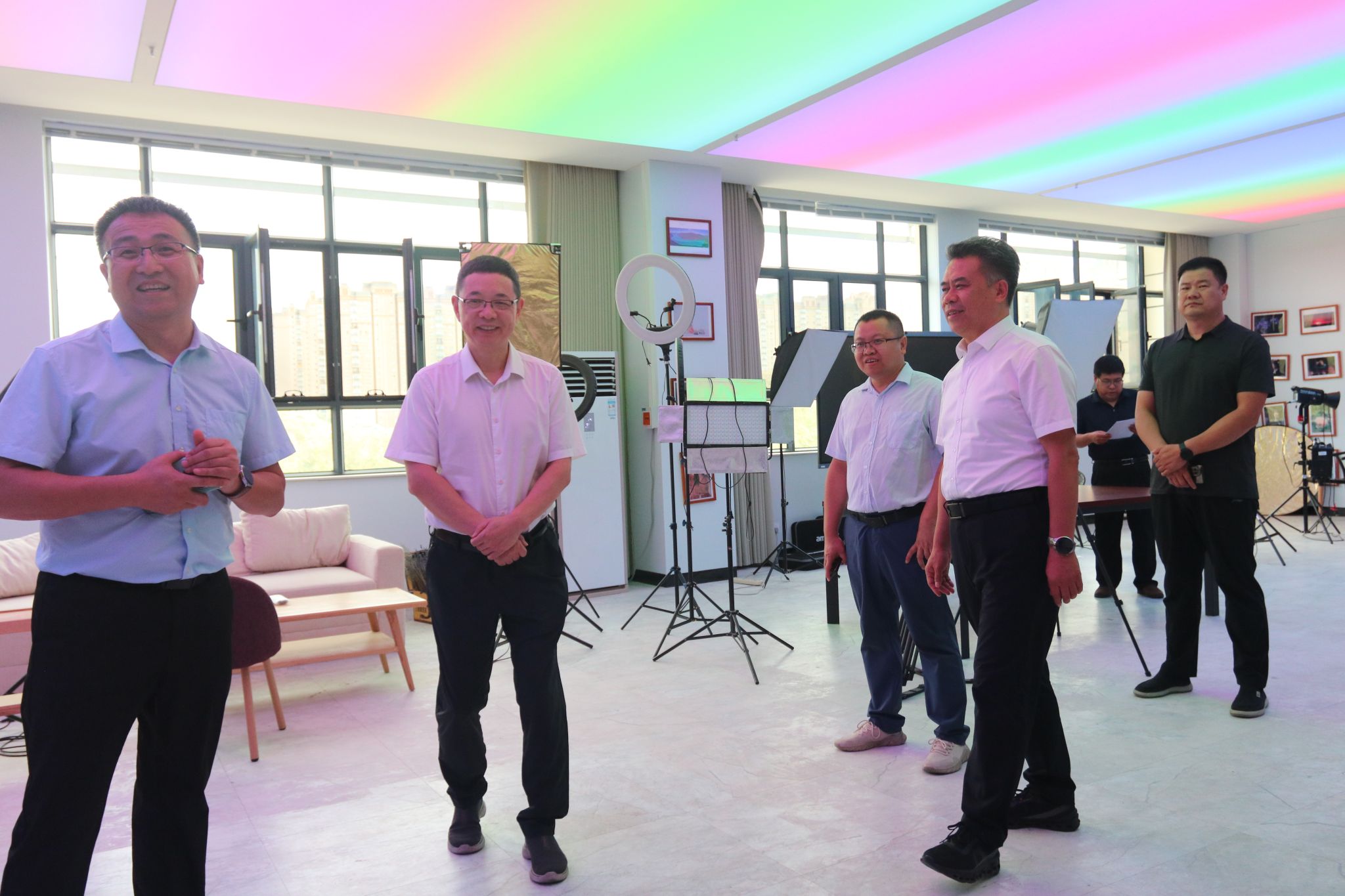 座谈会前,杨宗凯一行参观了学校文育楼教育技术实验室,并与365英国教育科学学院领导班子和骨干教师座谈交流教育数字化发展以及教育技术学专业建设的内容。