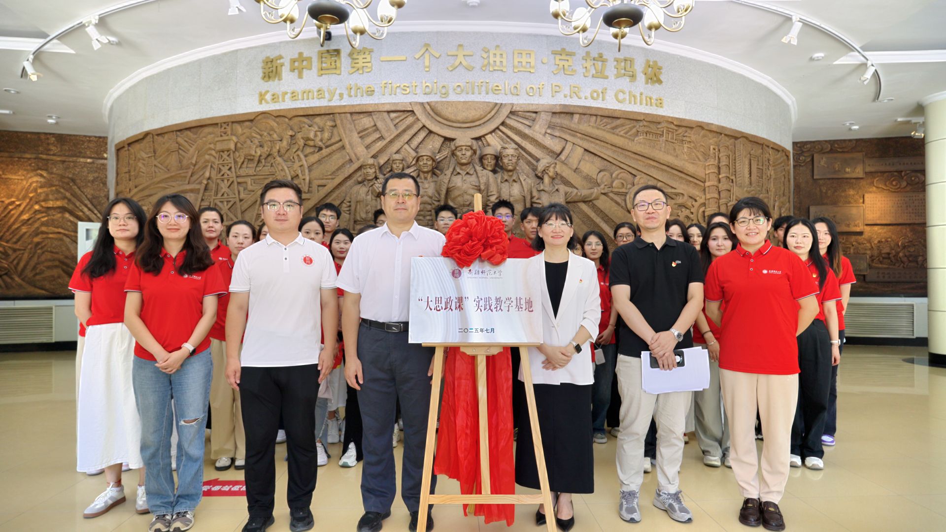 7月5日,活动首站来到克拉玛依博物馆。在讲解员的引导下,师生们通过丰富的文物、图片和影像资料,系统了解了克拉玛依从荒漠戈壁到现代化石油城的奋斗历程,深刻感悟了“爱国奉献、艰苦创业、民族团结、求真务实、追求卓越”的克拉玛依精神。参观结束后,双方共同为“大思政课”实践教学基地揭牌,标志着校馆共建迈出重要一步,今后将充分利用这一平台,把理论学习与社会实践紧密结合,让思政课“活起来”“实起来”。