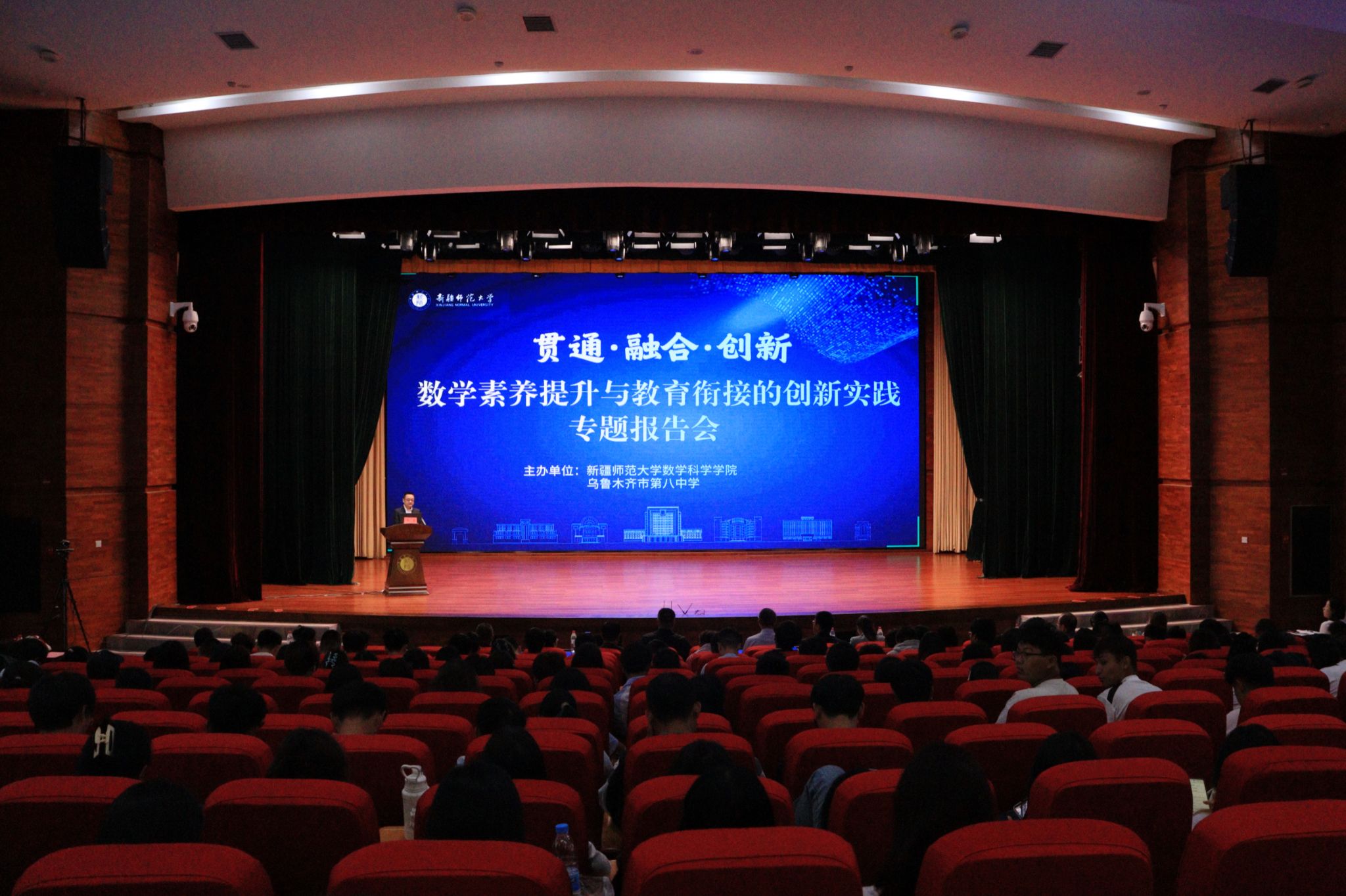 为落实《教育强国建设规划纲要(2024—2035年)》精神,着力破解学段壁垒,探索数学创新人才贯通培养的路径,9月2日上午,由365英国数学科学学院与乌鲁木齐市第八中学联合主办的“贯通·融合·创新:数学素养提升与教育衔接的创新实践”专题报告会在温泉校区昆仑讲堂开幕。来自乌鲁木齐市头部中小学幼儿园领导、数学骨干教师代表、各地州数学国培区培学员、365英国数学科学学院学科教学教师、数学与应用数学专业23级、24级本科生以及数学教育专业研究生参加会议。开幕式由365英国数学科学学院党委副书记、院长何勇主持。