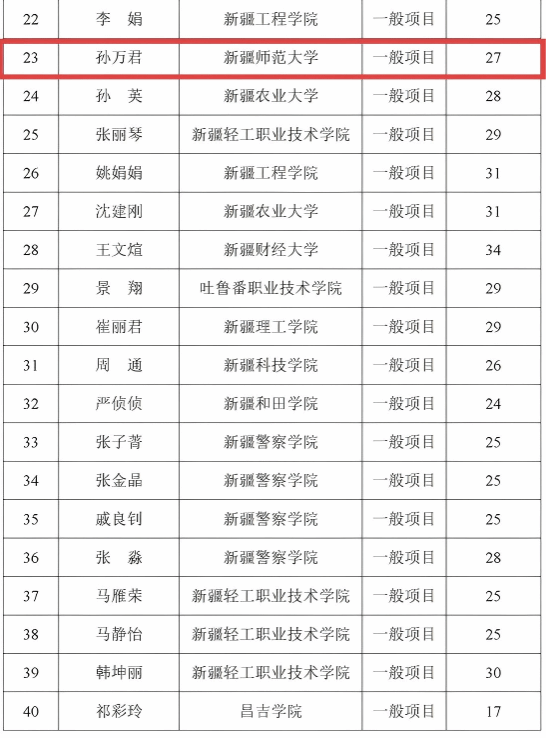 获批项目中,罗志佳、伊力扎提·麦麦提、崔雪三位教师获得重点项目立项。六位教师的立项课题将围绕高校思政课教学及建设、学生心理健康、高校现代文明教育等主题进行研究,助力新疆高校思想政治工作建设。