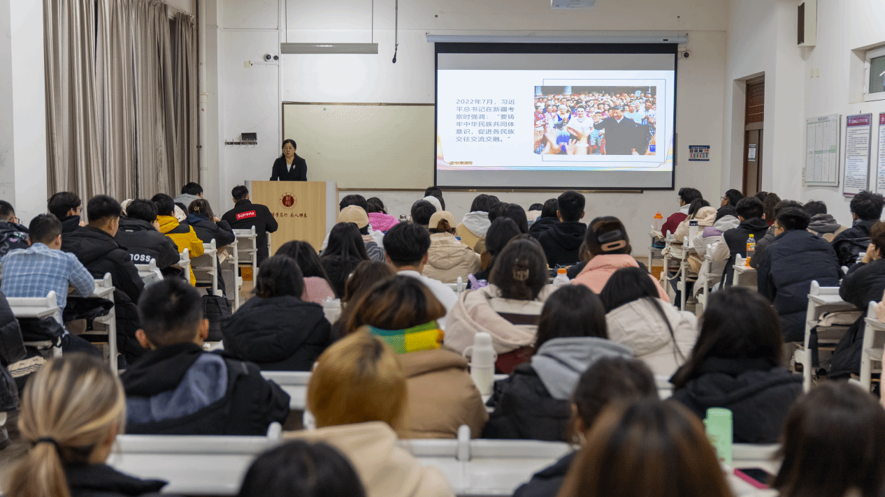 校领导们结合习近平总书记关于铸牢中华民族共同体意识的重要讲话精神与学校工作实际,从“团结之源头:深刻把握中华民族多元一体的基本国情”“变化之巨:全面认识民族团结进步事业的伟大成就”“长远之治:推动新时代党的民族工作高质量发展”三个部分,系统阐述了各民族的悠久历史、灿烂文化及民族团结进步事业的伟大成就。校领导们还结合自己工作和人生阅历及学校实际,讲述了近些年来新疆经济社会发展所取得的伟大成就,深刻阐释了铸牢中华民族共同体意识的概念及其内涵,积极引导广大同学争当民族团结进步事业的倡导者、践行者、维护者。
