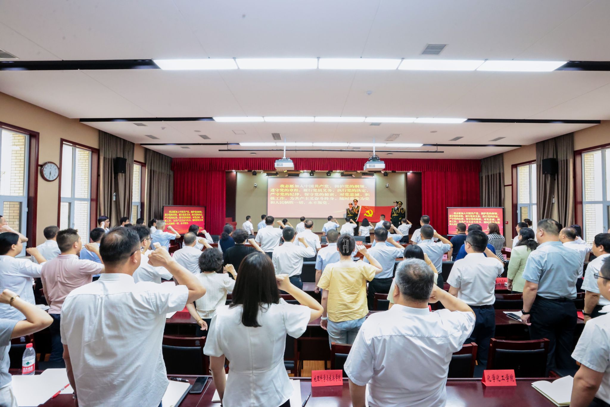 校党委书记蒋海军带领全体党员重温入党誓词