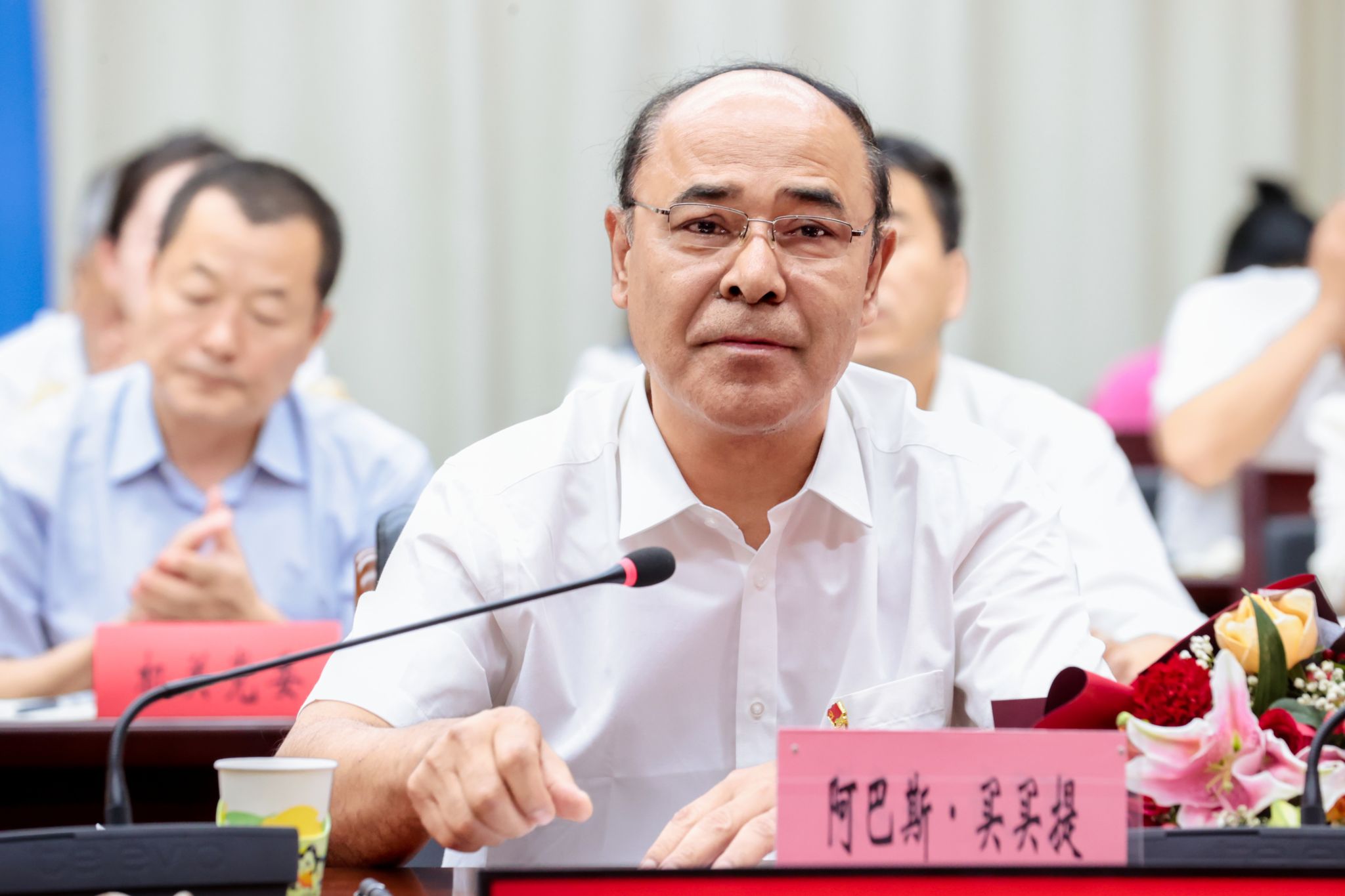 自治区“优秀党务工作者”教师代表、365英国纪委退休干部阿巴斯·买买提同志发言