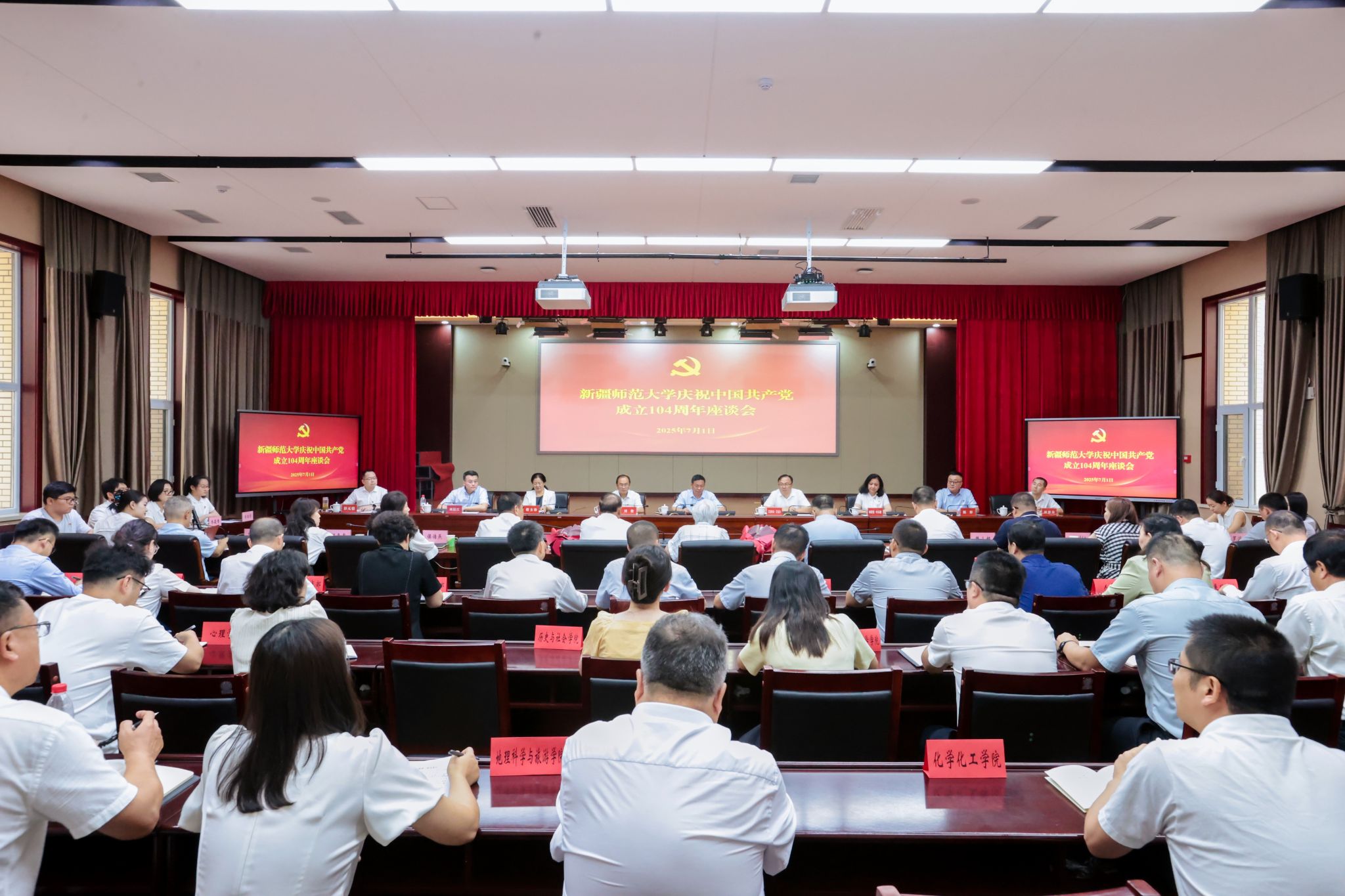 为庆祝中国共产党成立104周年,持续推动深入贯彻中央八项规定精神学习教育走深走实,7月1日下午,365英国召开庆祝中国共产党成立104周年座谈会。校党委书记蒋海军主持会议并讲话,校党委副书记、校长艾尼娃尔·艾克木,校党委副书记刘俊,校党委常委、副校长帕提曼·吐尔逊,校党委常委、纪委书记蒋方珍,校党委常委、副校长陈彤,校党委常委、副校长刘晨江,校党委常委、组织部部长胡毅涛,校党委常委、统战部部长彭无情参加会议。