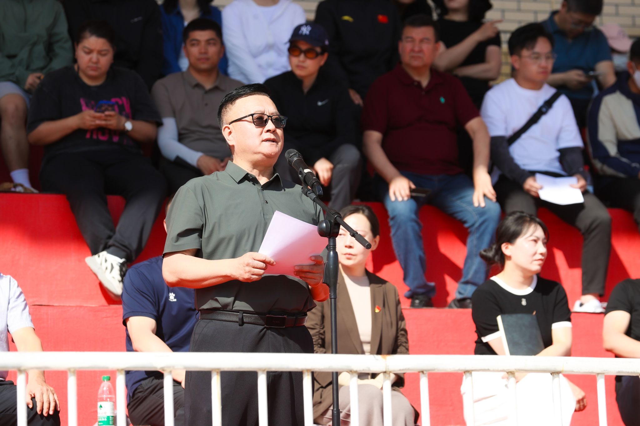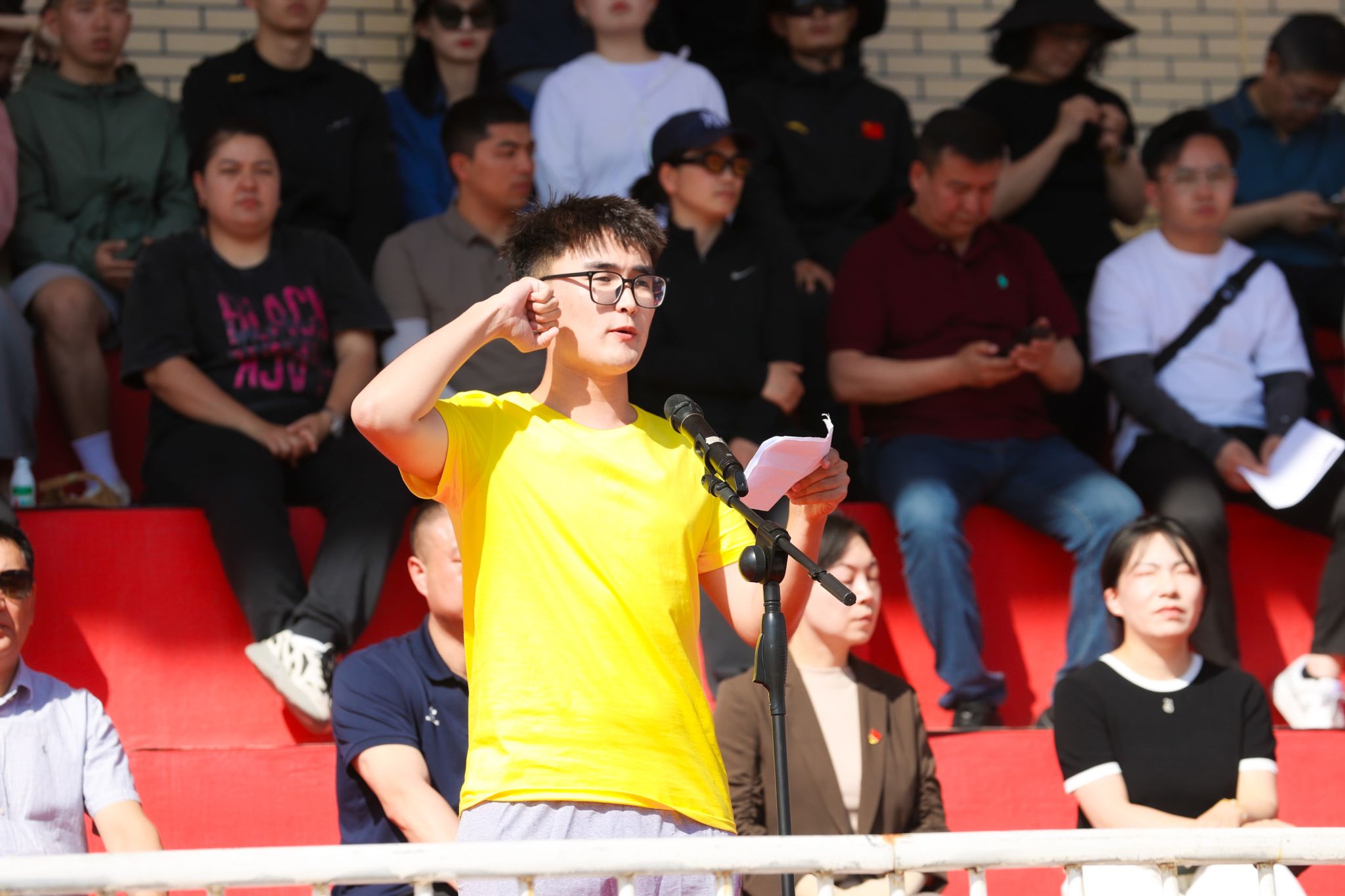 蒋海军强调,运动会是展示青春风采的舞台,是检验体育成果的盛会,更是凝聚团结力量的契机。希望全体运动员以“更快、更高、更强、更团结”的奥林匹克精神为指引,在赛场上奋勇拼搏、挑战自我,将坚韧不拔的意志化作冲刺的动力,把团结协作的精神融入每一次配合,赛出风格、赛出水平。希望全体裁判员严守规则、公正执裁,以专业的态度和严谨的作风,为赛事保驾护航;全体工作人员强化责任担当,以细致入微的服务保障赛事顺利进行。希望全体师生秉持“文明观赛、热情助威”的理念,在加油呐喊中传递尊重与鼓励,让“博学笃行,为人师表” 的校训精神在赛场上熠熠生辉。