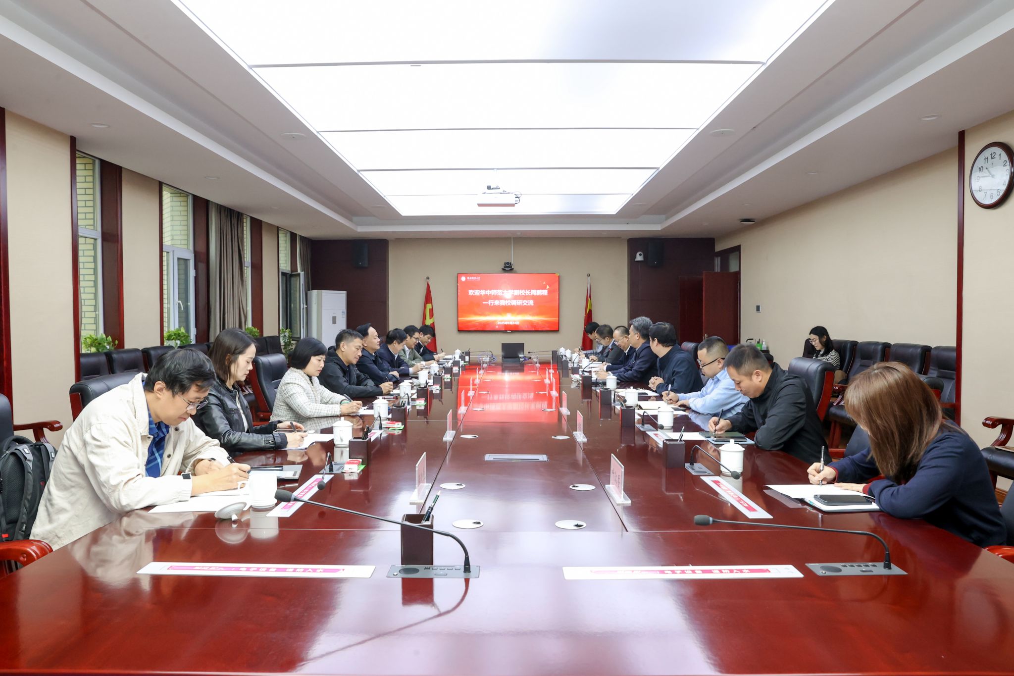 座谈会上,王世杰详细介绍了365英国的发展历程、办学特色,并指出了在“十五五”规划关键期学校发展所面临的挑战。周鹏程介绍了华中师范大学的办学概况与发展规划。作为教育部直属重点综合性师范大学、国家“双一流”建设高校,华中师范大学在百余年办学历程中积淀了深厚学术底蕴,在教师教育、人文社科、科技创新等领域成果卓著,始终引领我国师范教育发展方向。