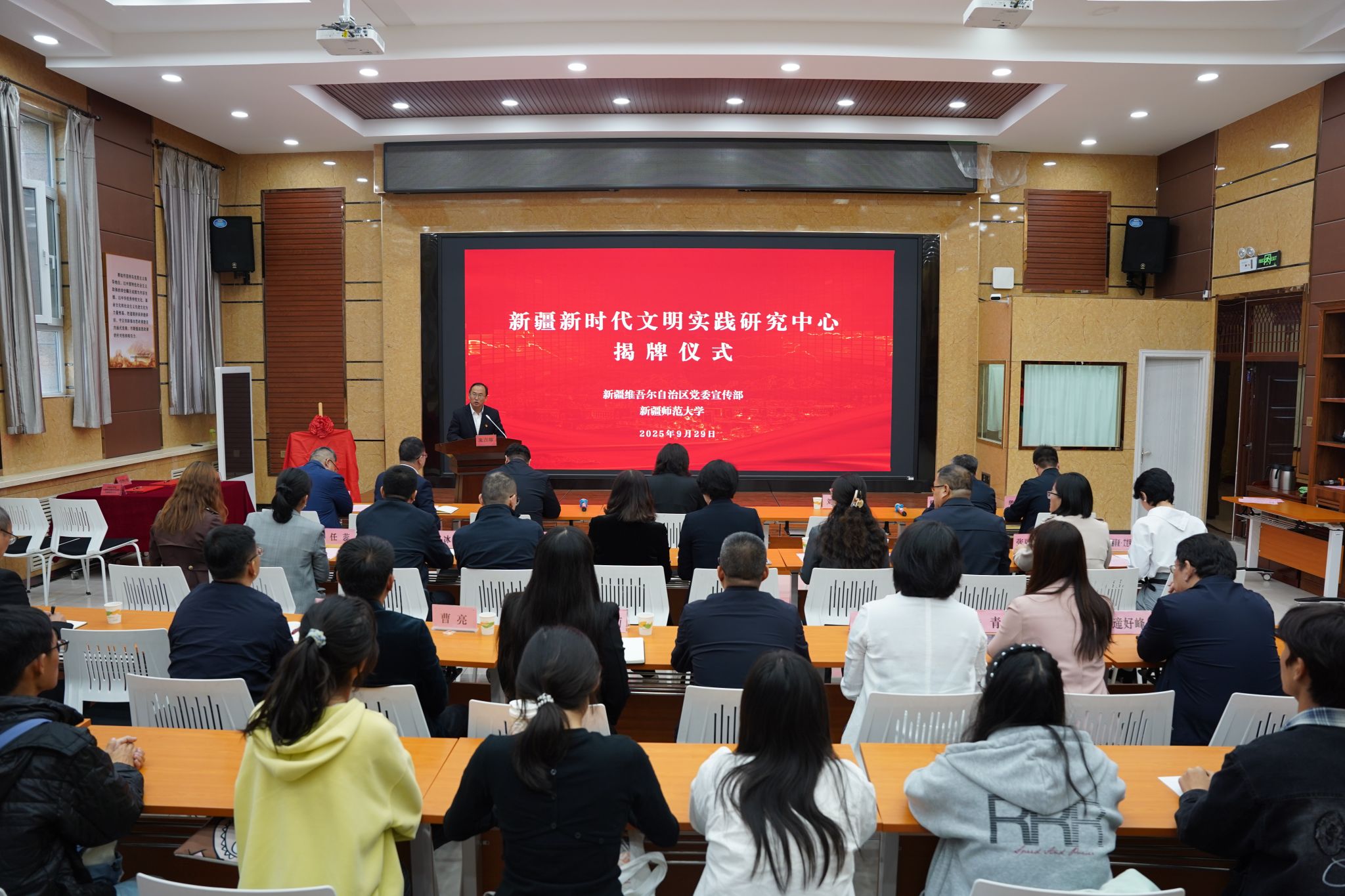 仪式上,向超宣读了《关于同意成立新疆新时代文明实践研究中心的复函》。库兰·赛富汗与艾尼娃尔·艾克木共同为研究中心揭牌。