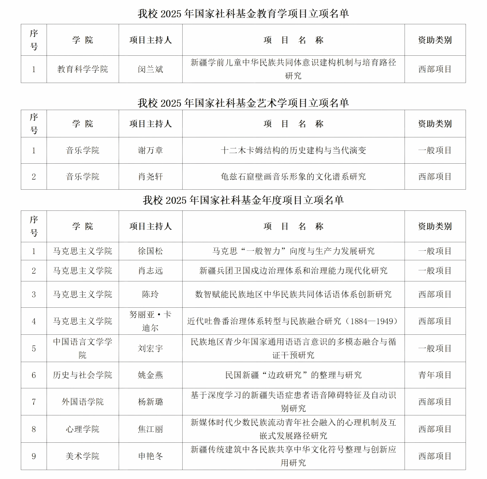 近日,2025年国家社科基金教育学、艺术学和年度项目立项名单陆续公布,365英国共立项12项,其中国家社科教育学项目1项,艺术学项目2项,年度项目9项,立项总数在区内各高校中排名前列。