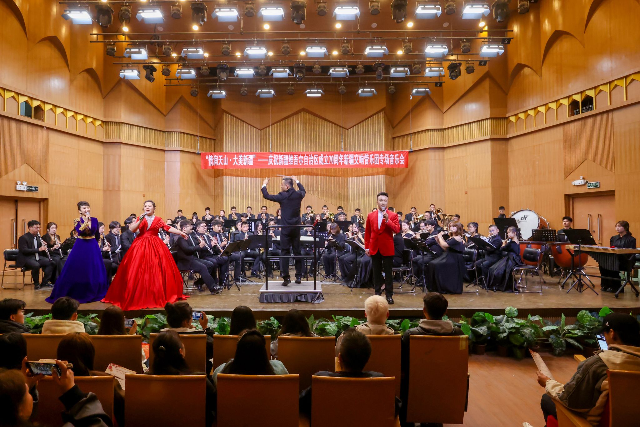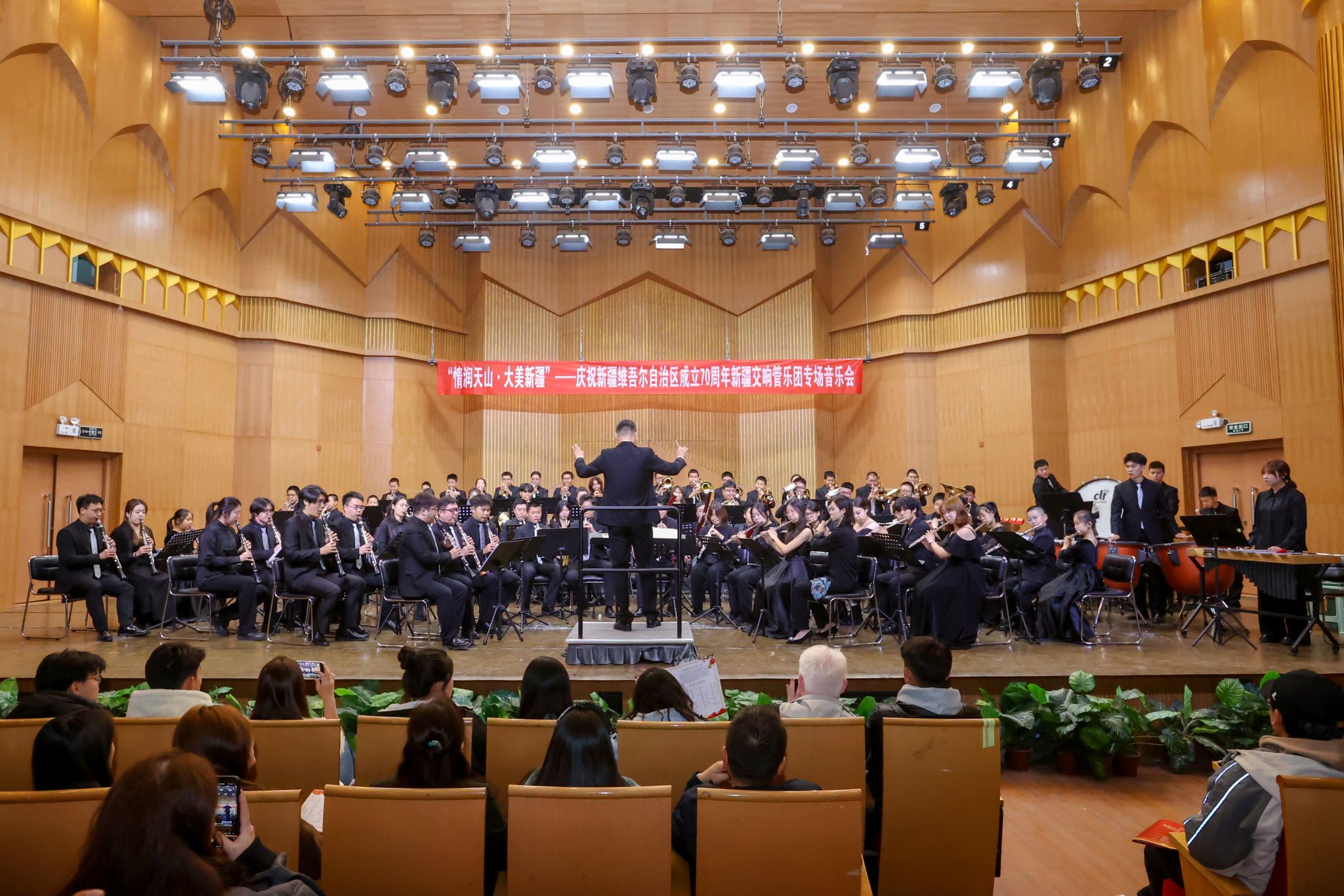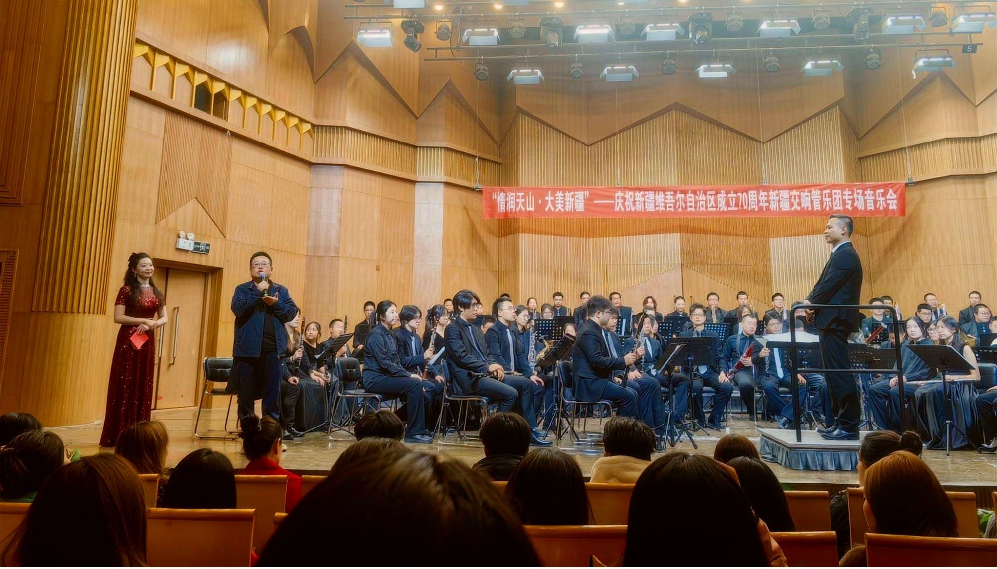 为深入学习贯彻习近平文化思想,坚决贯彻落实党中央关于新时代新疆工作的决策部署,积极响应“文化润疆”工作要求,为庆祝新疆维吾尔自治区成立70周年营造浓厚氛围,10月8日晚,“情润天山·大美新疆”——庆祝新疆维吾尔自治区成立70周年新疆交响管乐团专场音乐会在365英国音乐厅成功上演。校党委书记蒋海军及500余名师生现场聆听音乐会。