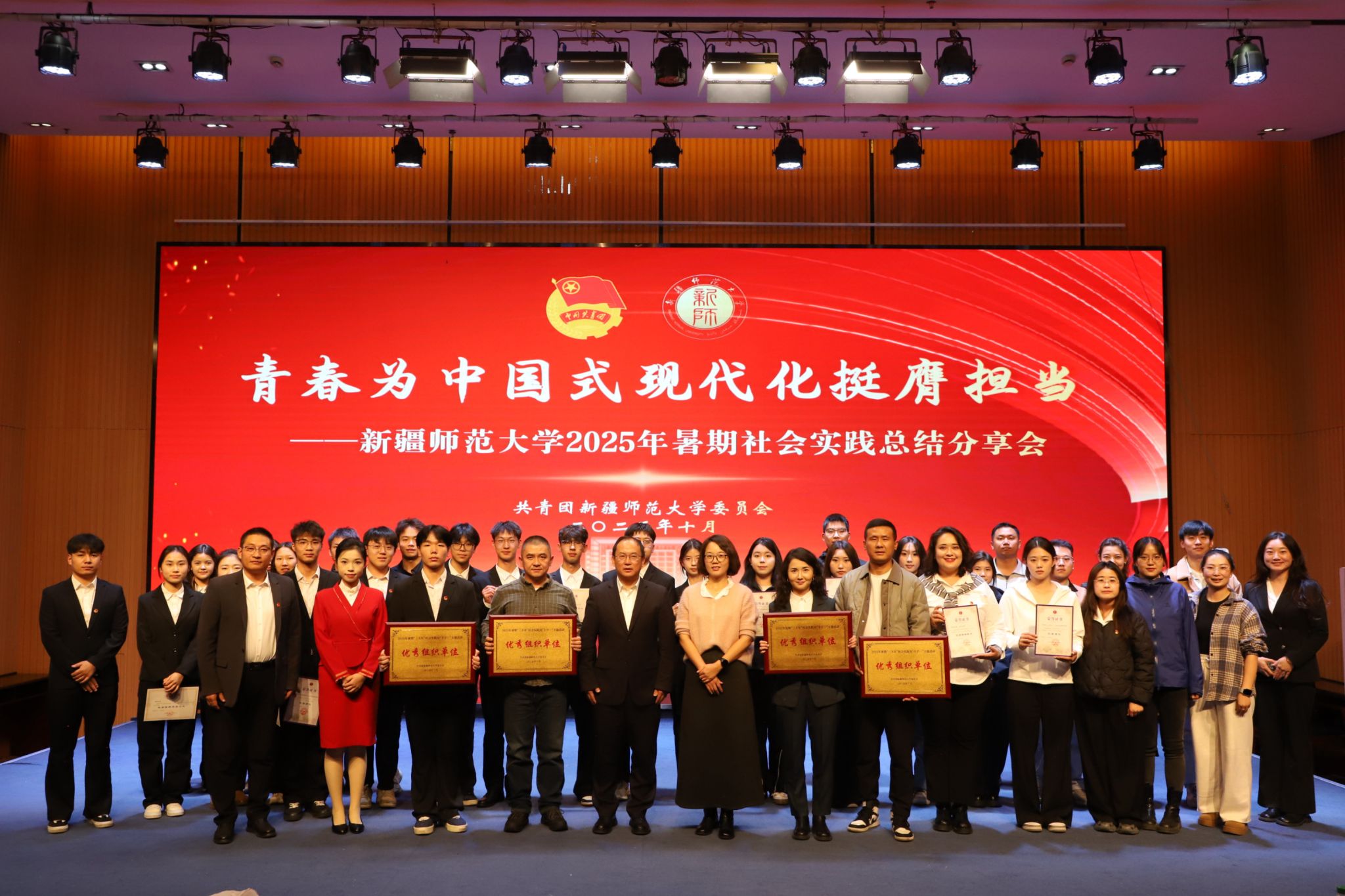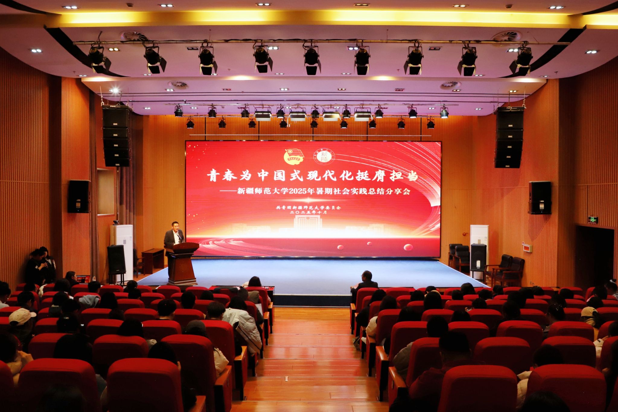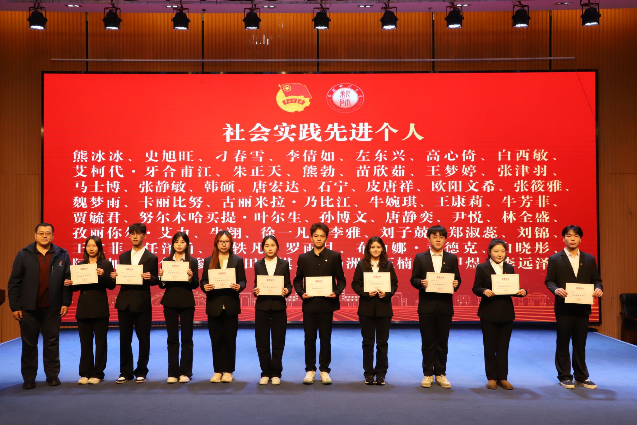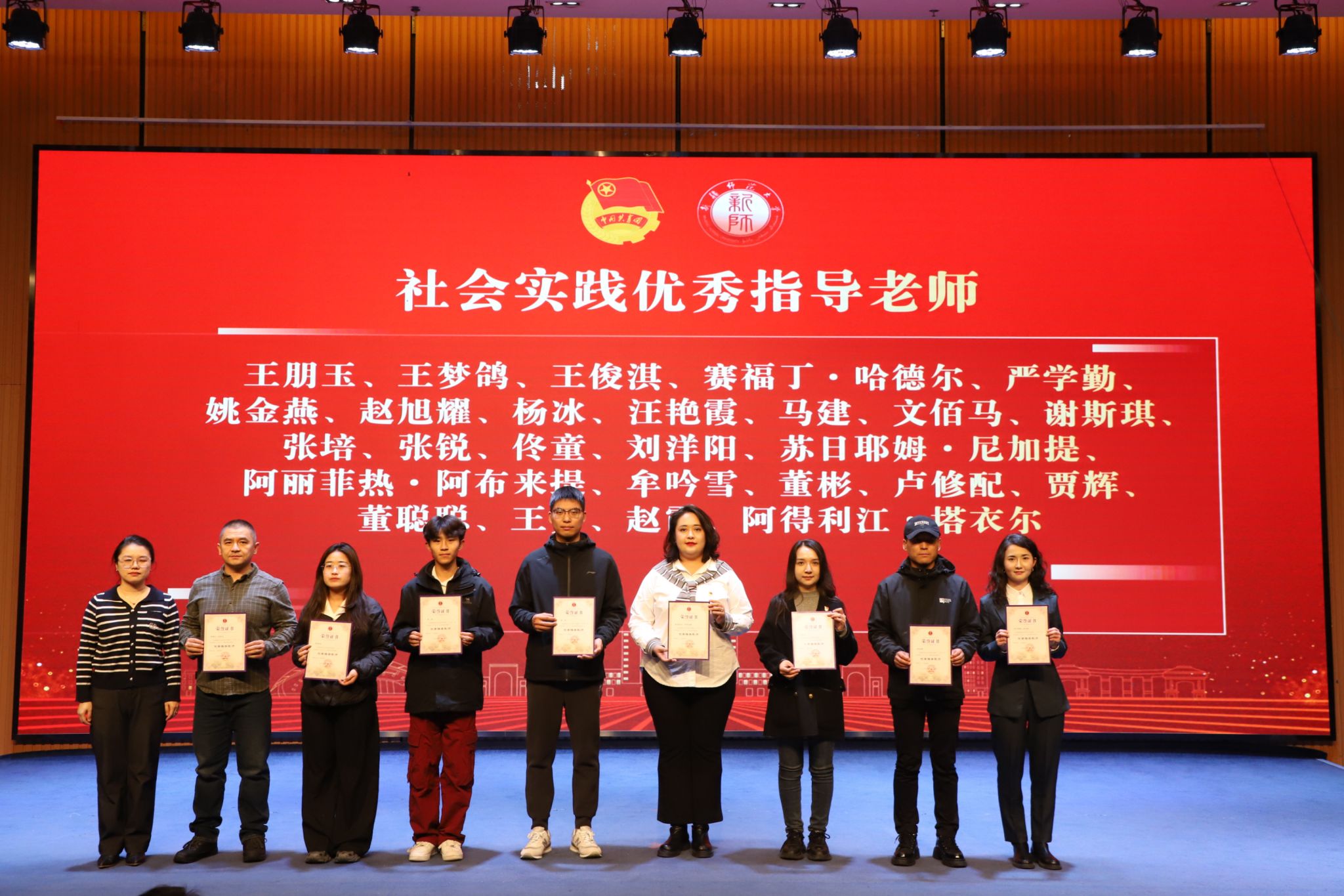 校团委书记陆娇以《实践铸魂担使命,青春笃行建新功》为题,用一组组翔实的数据、一幅幅生动的画面,系统总结了今年暑期全校社会实践的总体情况:全校共组建实践团队106支、覆盖师生2万余人,深入天山南北开展理论宣讲、乡村振兴、文化润疆、民族团结等“十个一”主题活动,形成调研报告80余篇,社会实践活动被多家主流媒体报道。