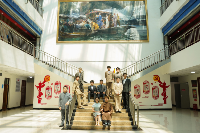 同学们再现中共一大在红船召开时的场景