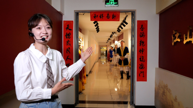 在主题为“见证真理的伟力:新时代的历史性成就”的课程中,同学们在老师的讲述中,感悟我国各领域新时代以来的伟大成就,不断升华爱国之情、强国之志。在基地连廊中,参加课程表演的同学们身着中山装、中式旗袍、海魂衫、汉服、新中式服装等不同时期的流行服饰。这一场跨越时空的“服装秀”,让同学们直观地感受到服饰从色彩、样式方面体会到人民生活的提高,体会到改革开放的实践伟力。