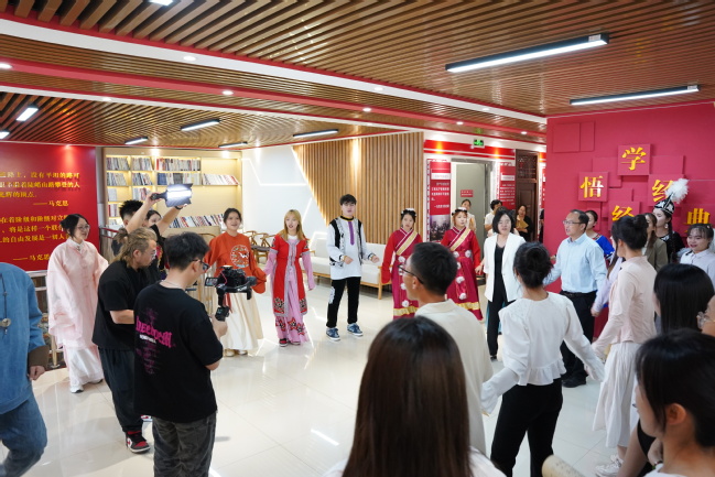 为进一步贯彻落实习近平总书记对学校思政课建设重要指示精神,切实推动高校思想政治理论课改革创新,增强思政课教学的历史感、场景感、真实感、创造感,讲深、讲透、讲活、讲好思政课,6月5日,马克思主义学院举行首场“感悟真理的力量”沉浸式思政课教学展示活动。活动以沉浸式教学的理念,将传统课堂从教室搬进了学校新时代文明实践党史学习教育基地暨马克思主义理论教育基地,通过情景演绎、角色扮演、互动体验、师生共讲等形式,让思政课鲜活起来。校党委副书记刘俊出席活动,胡杨先锋班学员、部分学生代表参与活动。