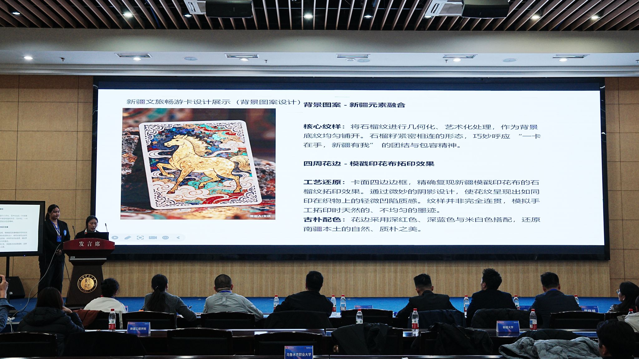 在大赛进行的同时,还举办了“设计点亮未来·AIGC教育教学赋能产业发展”专题论坛。上海市多媒体行业协会AIGC专委会秘书长董道国以《AIGC进展与设计产业变革》为题,深入解析技术迭代与产业转型的内在关联,并以即梦3.0为例展示了AIGC在宣传海报直接生成等场景中的强大应用能力;上海交通大学媒体与传播学院王昊聚焦《AIGC赋能校园宣传工作的方法和路径》,探讨了技术在校园场景中的实践策略;新疆艺术学院设计学院副院长李世奇围绕《人工智能规训——教AI学习中式审美》,分享了AIGC与传统文化审美深度融合的探索成果;图萌(上海)科技有限公司陆易以《AIGC生成式人工智能内容创作人才培养——AIGC赋能实践教学新路径》为主题为新疆各院校的实践教学改革提供了新思路。