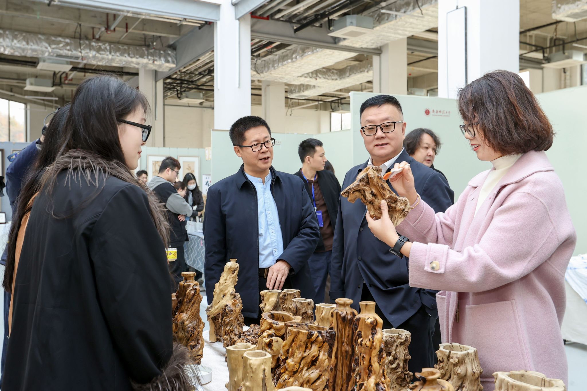 与会人员体验根雕艺术