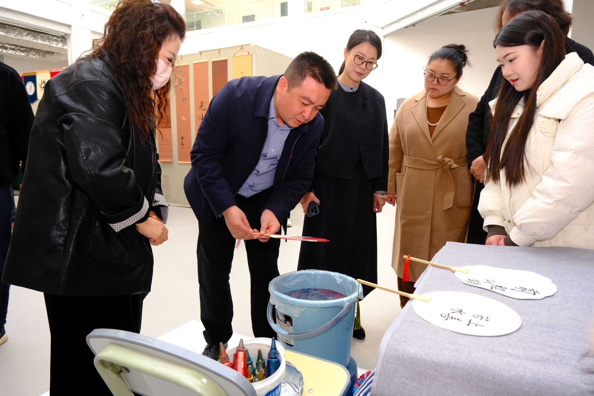 与会人员体验漆扇艺术