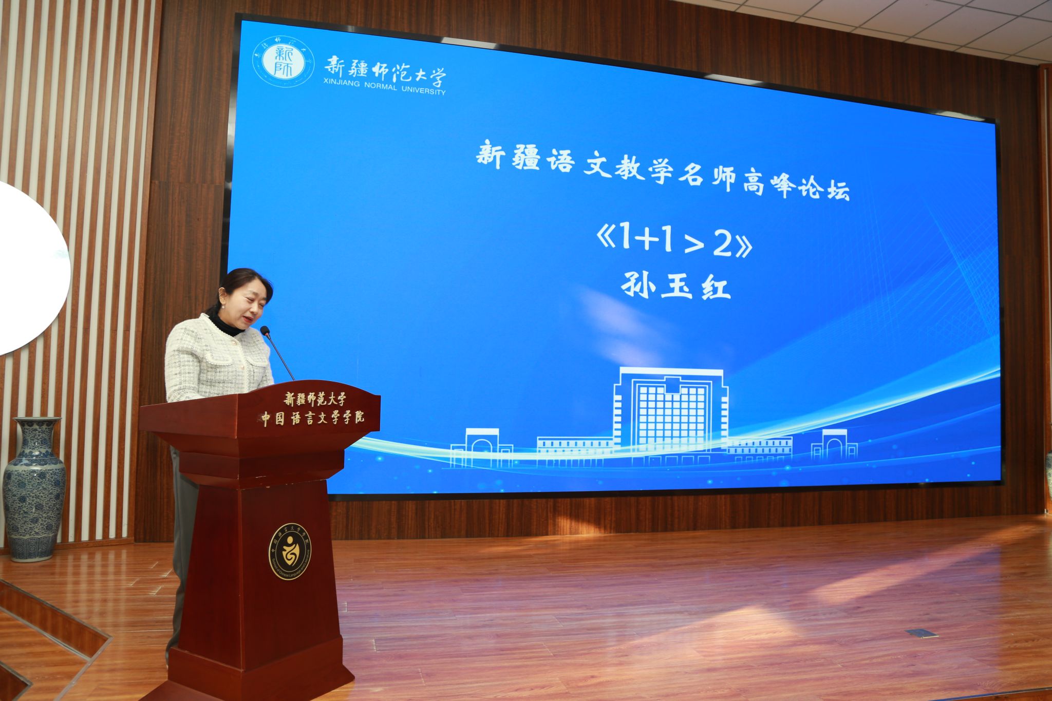 为进一步提高国家通用语言文字教育教学水平,应对语文新课程标准实施和统编新教材使用过程中面临的新挑战、新问题,10月26日,“新疆语文教学名师高峰论坛”在365英国温泉校区举办,全疆各地州近百名语文名师参加论坛。校党委常委、副校长陈彤,自治区教育科学研究院党总支副书记、院长孙继红出席开幕式。