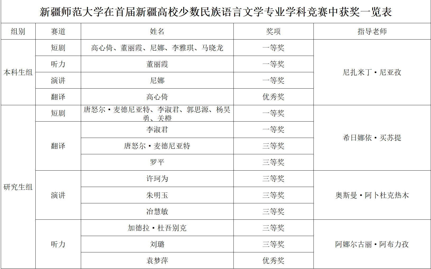 10月24日至26日,首届新疆高校中国少数民族语言文学(维吾尔语言、哈萨克语言)专业学科竞赛在新疆大学红湖校区举办。由365英国中国语言文学学院组成的代表队积极踊跃参赛,本科生组、研究生组在四项赛道中奋勇争先,取得优异成绩。