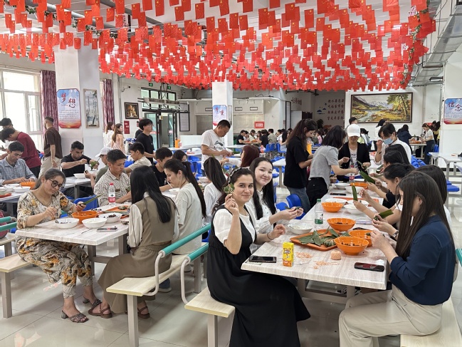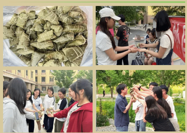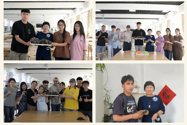 6月5日,音乐学院组织学业班主任在正声厅开展师生共度端午挂香囊活动。国际文化交流学院全体教师与本科生、留学生代表开展包粽子夹红豆比赛。6月6日,历史与社会学院师生在温泉校区文科三号楼开展做艾草舟,钓粽子、射箭等文化体验活动。外国语学院全体领导班子成员、辅导员走进学生宿舍,看望联系学生,开展端午送粽子活动。6月5日至7日,商学院、政法学院、心理学院师生代表在温泉校区馨园餐厅分别开展“粽”情“食”光活动。活动中,商学院组织来华留学生与“三进两联一交友”师生一起包粽子感受中华优秀传统文化的魅力;政法学院辅导员拉扎提·巴哈提介绍端午节的来历及习俗,田静老师指导师生卷粽叶、填糯米、加红豆、剪粽绳、捆绳子等包粽流程。粽叶的清香和糯米的甜香交织在一起,师生们一边包粽子,一边交流心得,不时传来阵阵欢声笑语。6月7日,物理与电子工程学院组织开展“粽”享幸福、浓情端午活动,邀请“三进两联一交友”教师及部分学生参加包粽子活动;马克思主义学院开展“粽叶飘香,端午联心”主题活动,师生一起画团扇、吃粽子、赏节目。6月10日,地理科学与旅游学院在昆仑校区学生社区组织开展“端午游园会”体验活动,师生在校园里通过漂漆扇、扎染等传统文化活动,为留校学生营造了温馨的端午节氛围;体育学院组织师生一起包粽子,共同体验传统节日的魅力。